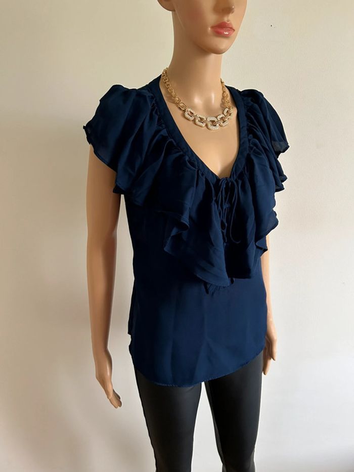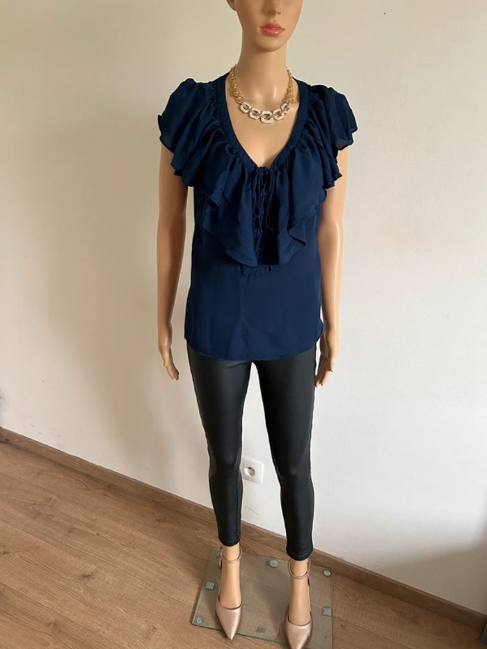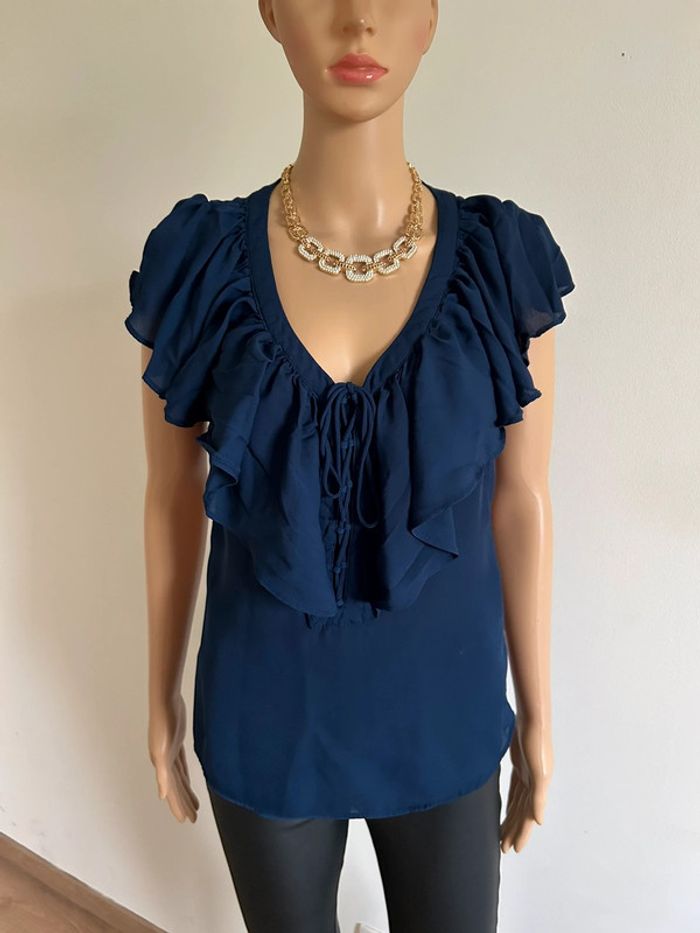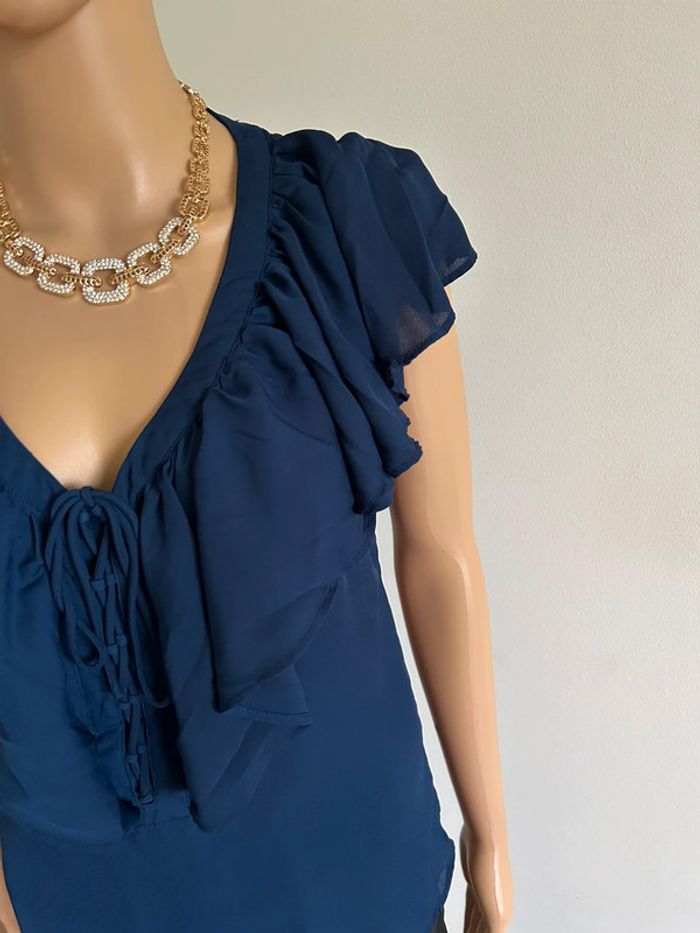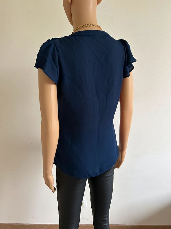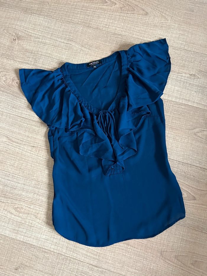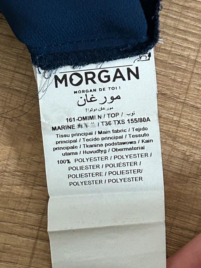 Jolie blouse bleue marine à manches courtes, de marque Morgan. Taille 36. Jamais portée, état neuf. aisselle à aisselle 44 cms taille 40 cms longueur depuis épaule 60 cms 100% polyester Le prix reste négociable dans la limite du raisonnable. Un petit cadeau dans le colis 🌸 (Boîte 1)