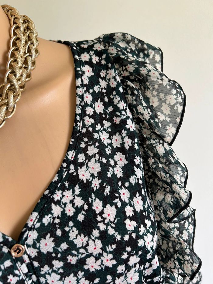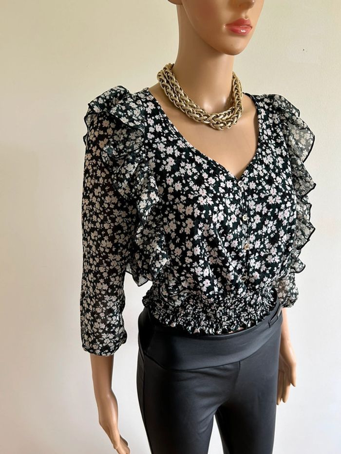 Jolie blouse courte fleurie à manches longues, de marque Morgan. Taille S. Jamais portée, état neuf. aisselle à aisselle 41 cms et plus épaule à épaule 35 cms et plus longueur manches 45 cms taille 35 cms et plus longueur depuis épaule 44 cms Le tissu est extensible 95% polyester et 5% elasthanne Le prix reste négociable dans la limite du raisonnable. Un petit cadeau dans le colis 🌸 (Boîte 2)