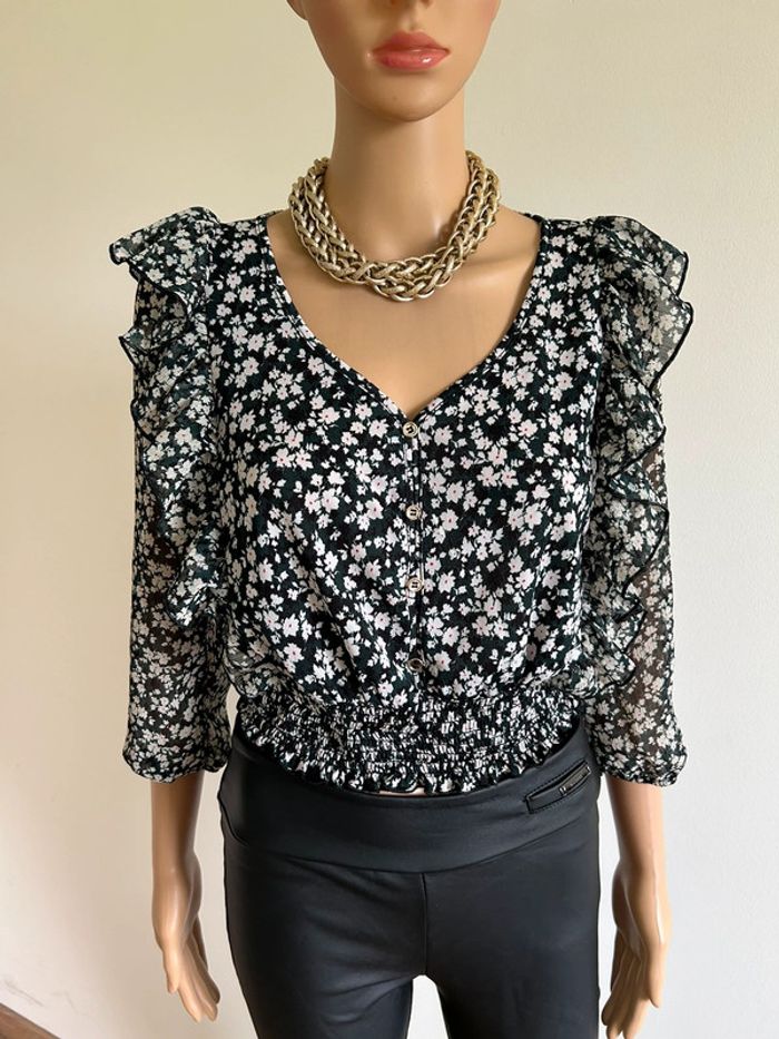 Blouse courte fleurie à manches longues Morgan taille S jamais portée