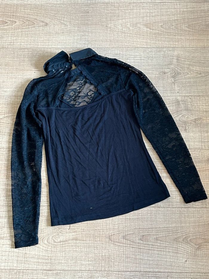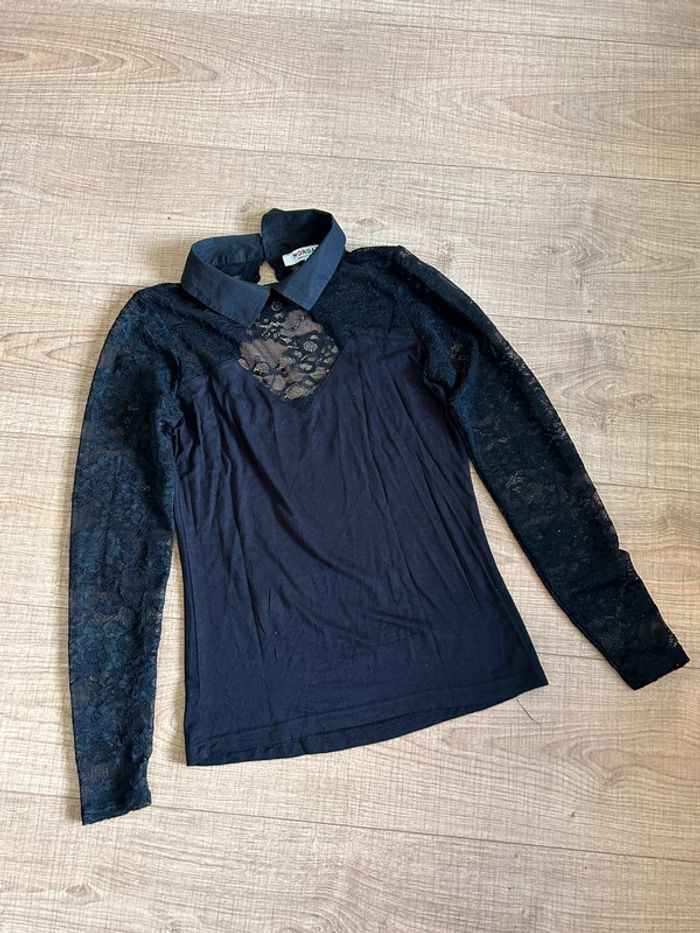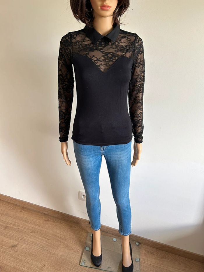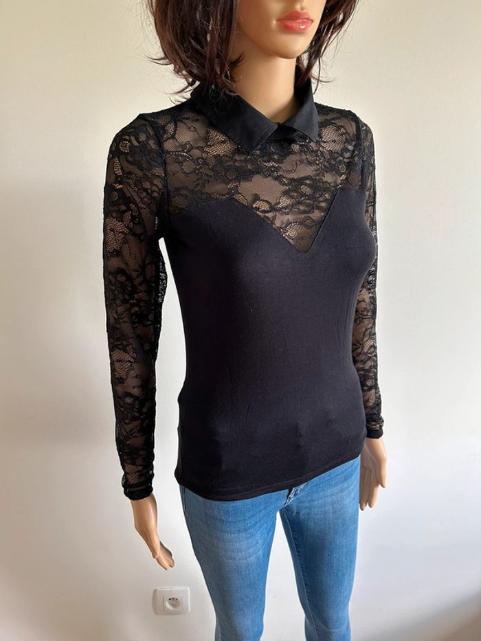 Haut noir à manches longues avec dentelle Morgan taille S TBE - photo numéro 3