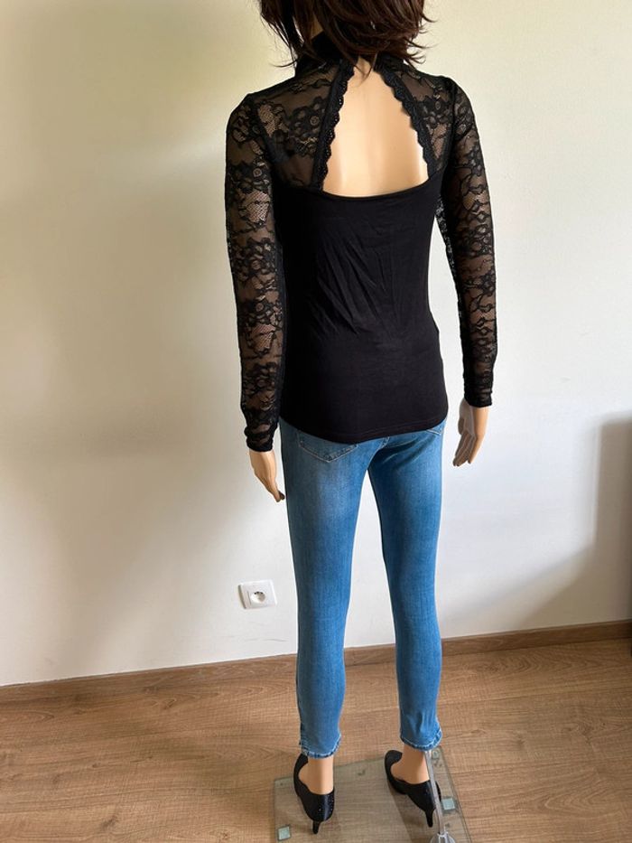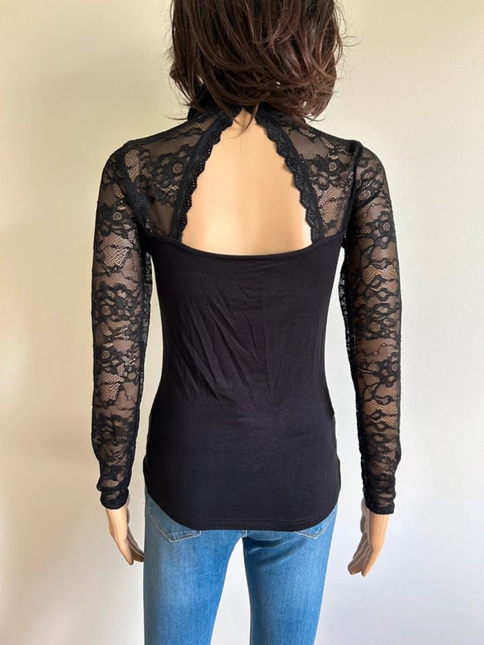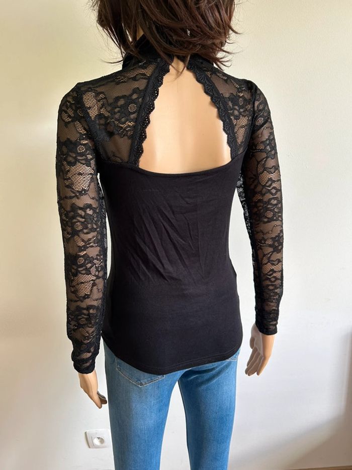Haut noir à manches longues avec dentelle Morgan taille S TBE - photo numéro 4