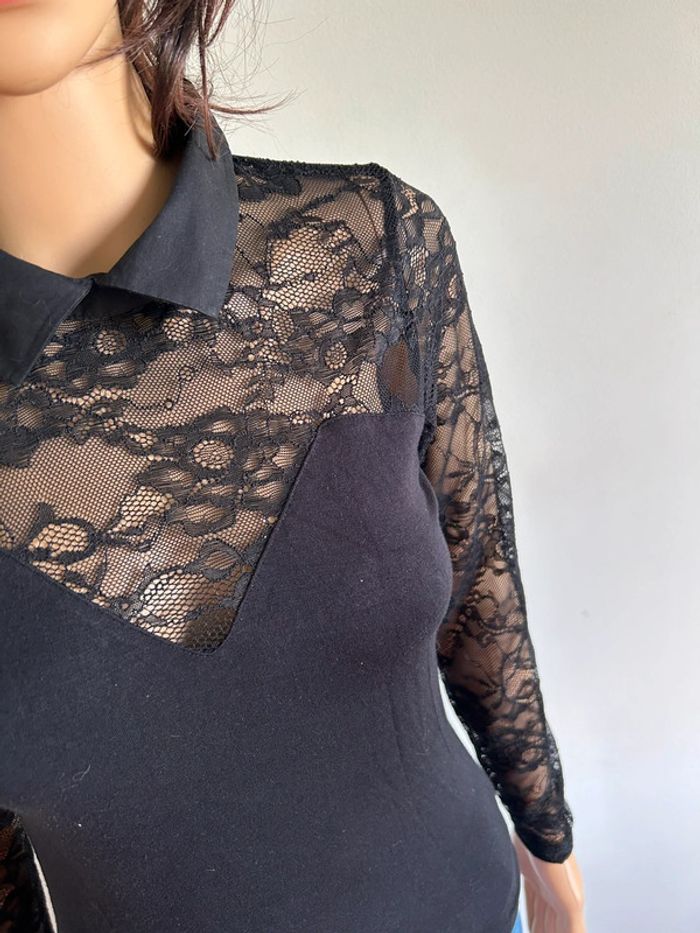 Haut noir à manches longues avec dentelle Morgan taille S TBE - photo numéro 7