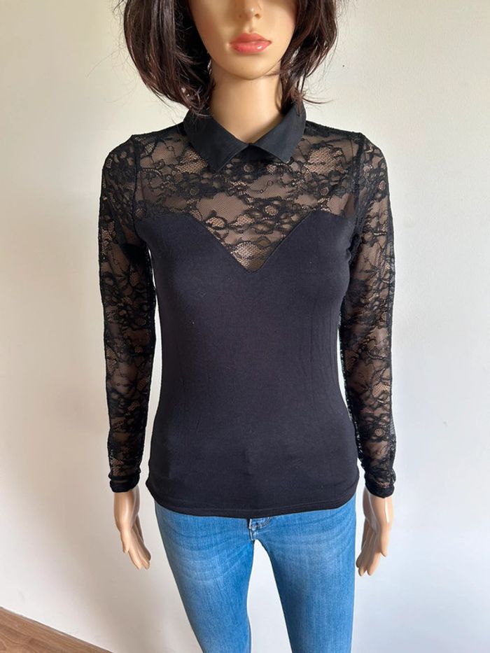Haut noir à manches longues avec dentelle Morgan taille S TBE - photo numéro 1