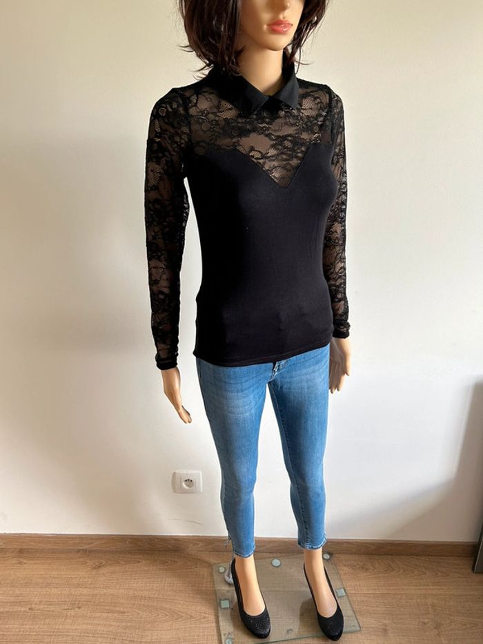 Haut noir à manches longues avec dentelle Morgan taille S TBE - photo numéro 11