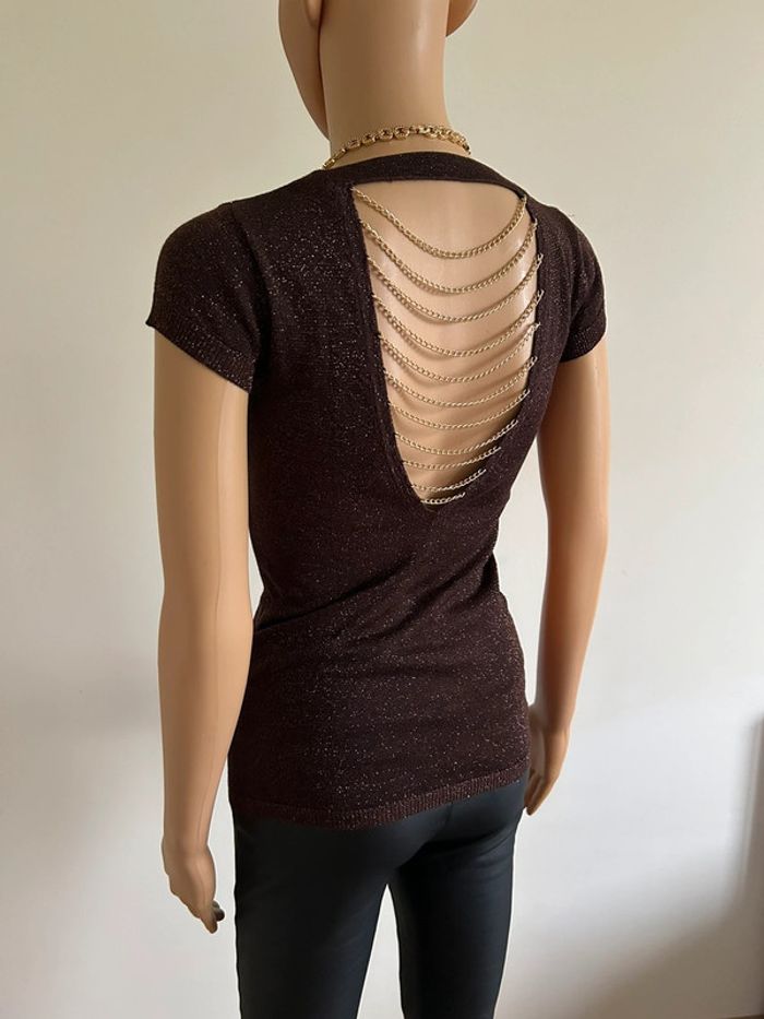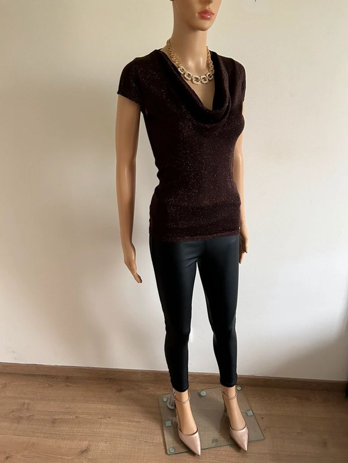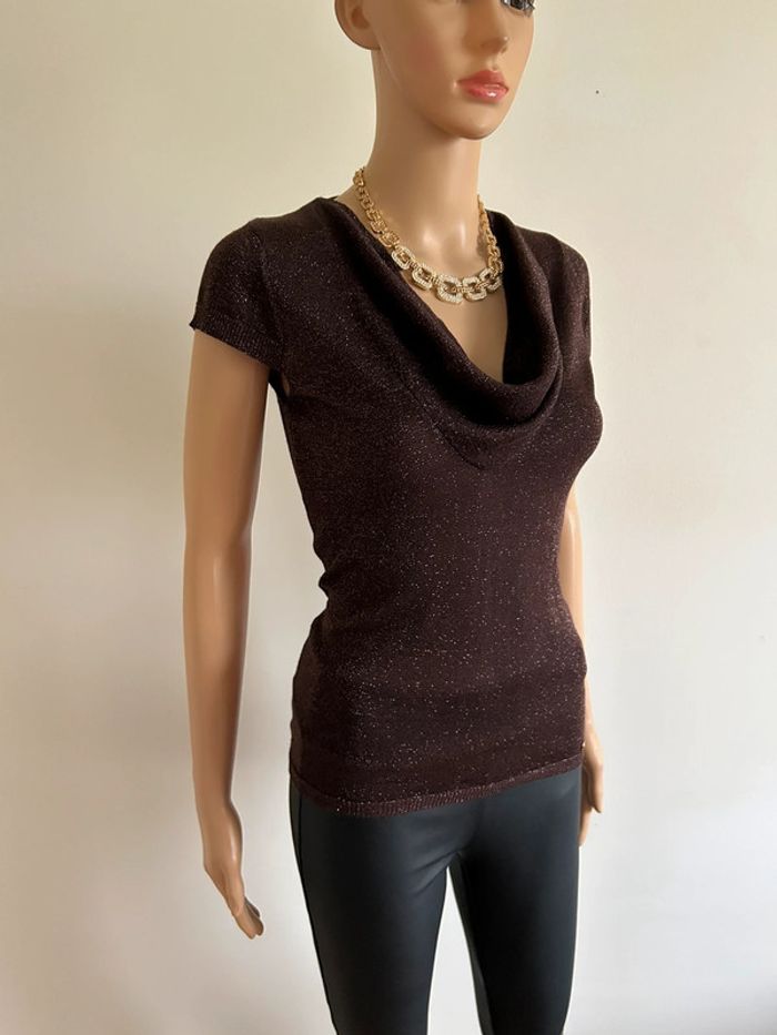 Haut marron pailleté à manches courtes Morgan taille XS TBE - photo numéro 12