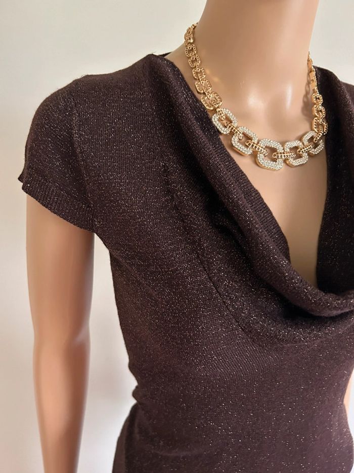 Haut marron pailleté à manches courtes Morgan taille XS TBE - photo numéro 7
