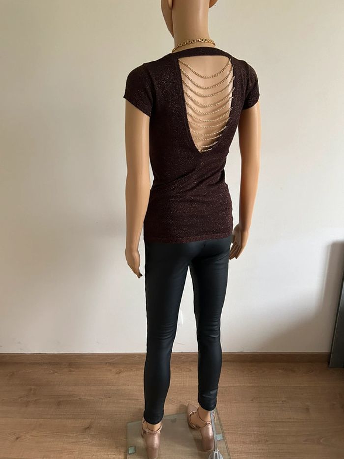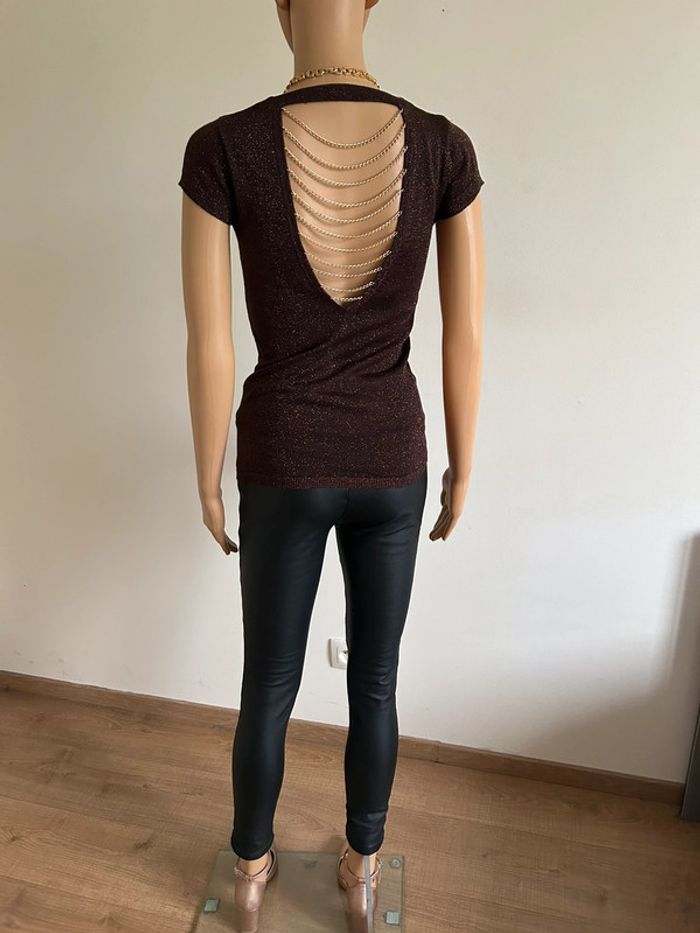 Haut marron pailleté à manches courtes Morgan taille XS TBE - photo numéro 4