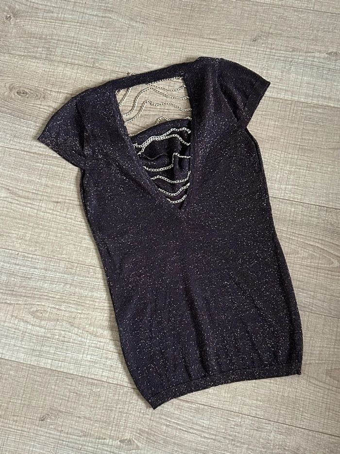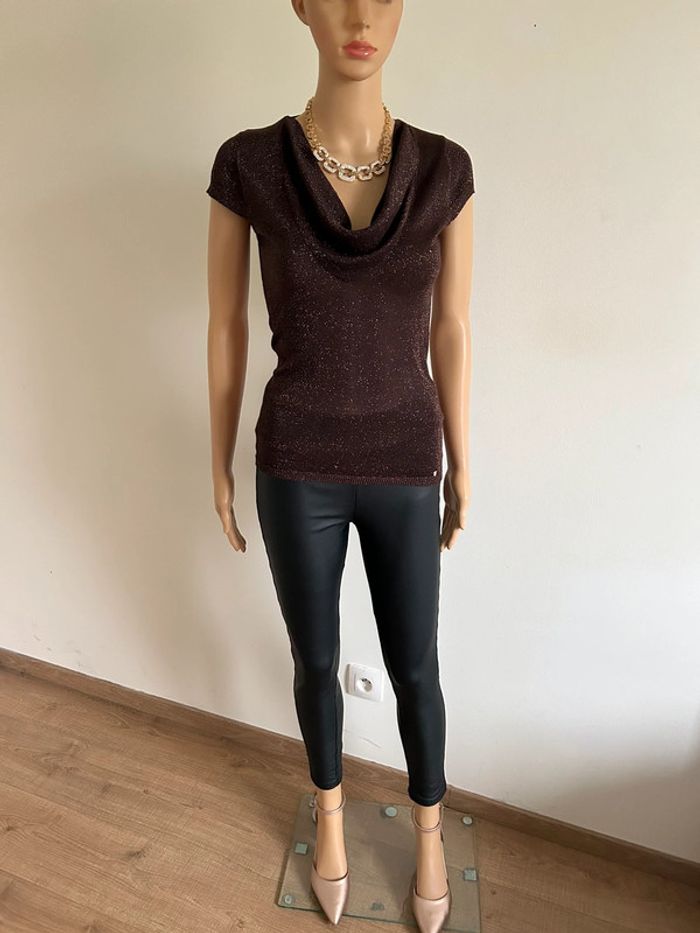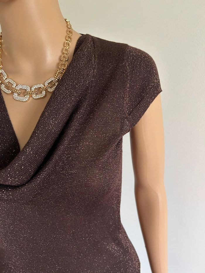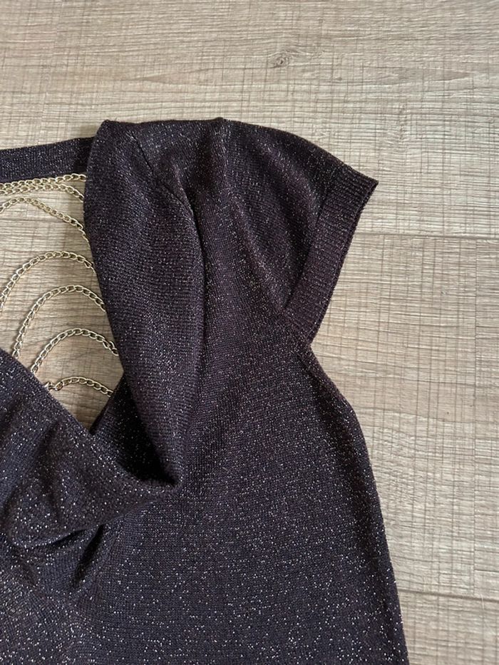 Haut marron pailleté à manches courtes Morgan taille XS TBE - photo numéro 14