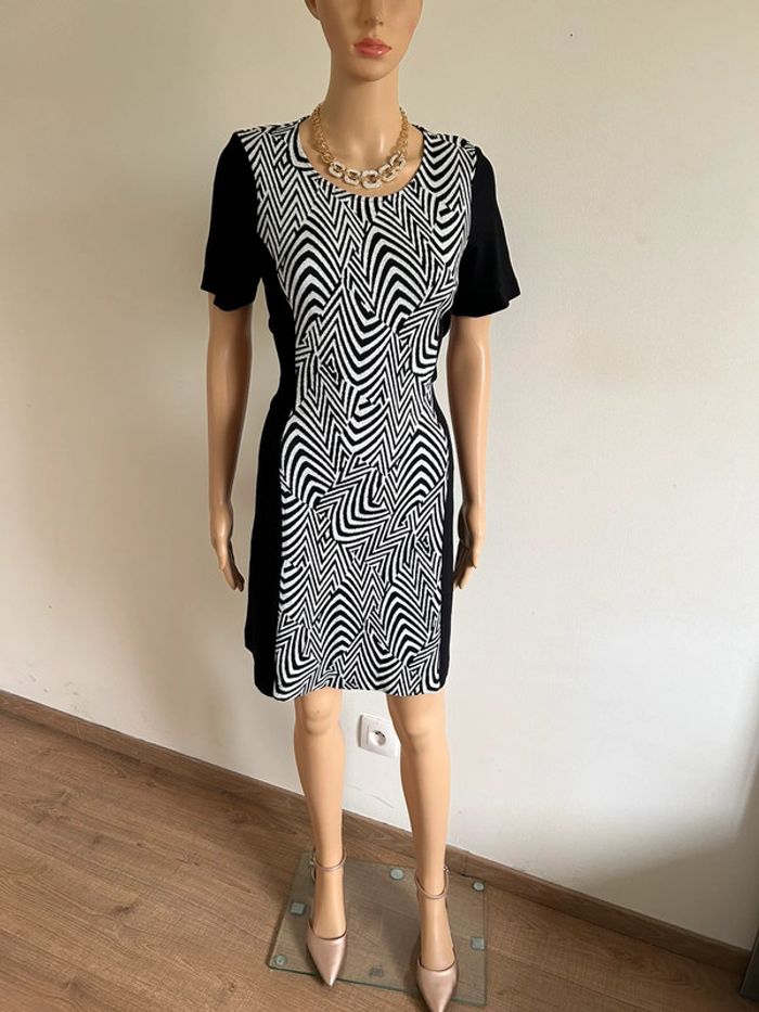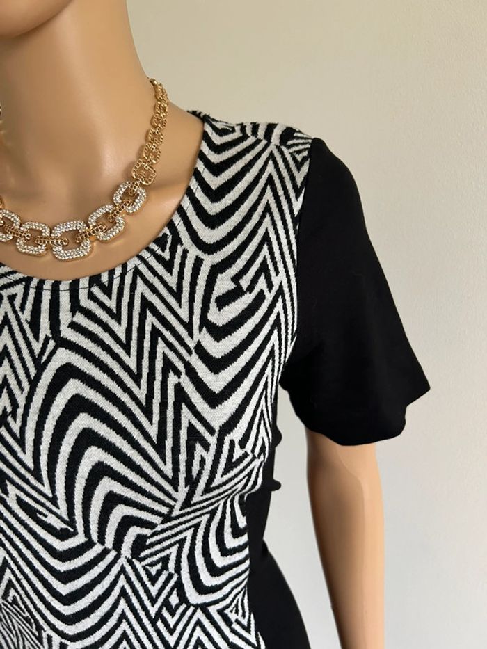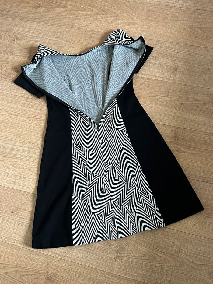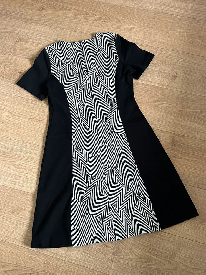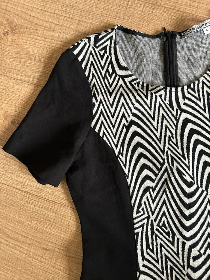 Jolie robe noire et blanche à manches courtes, de marque la Fée Maraboutée. Fermeture dans le dos. Taille 4 qui correspond à du 42, mais elle taille petit (voir mesures en dessous). Portée quelques fois, en bon état. aisselle à aisselle 45 cms à 55 cms épaule à épaule 35 cms à 42 cms taille 38 cms à 45 cms longueur depuis épaule 90 cms Le tissu est extensible 50% acrylique, 39% coton, 9% polyamide et 2% elasthanne Le prix reste négociable dans la limite du raisonnable. Un petit cadeau dans le colis 🌸