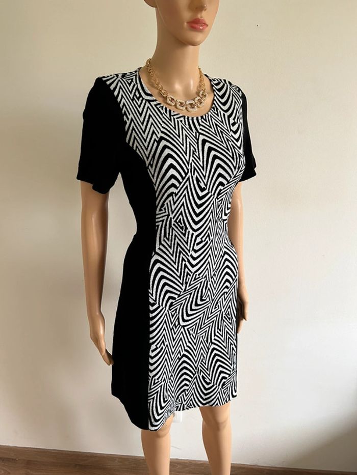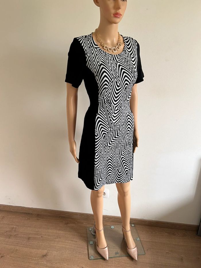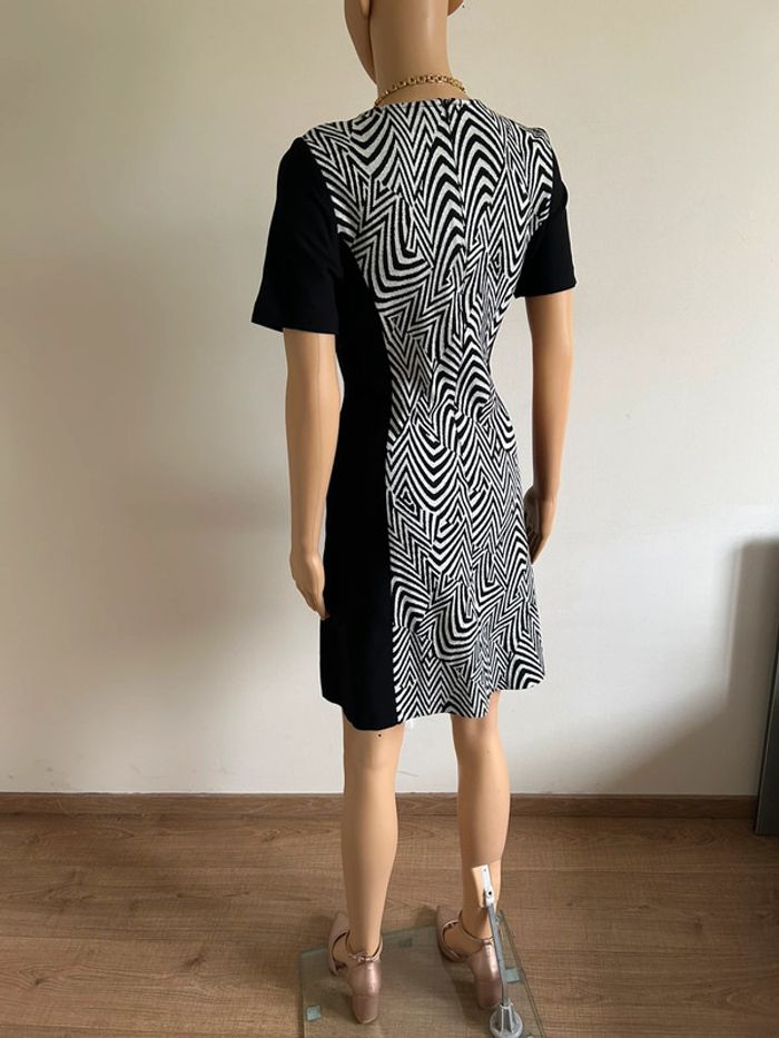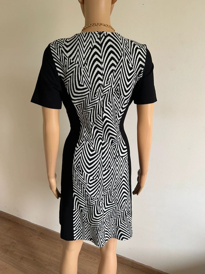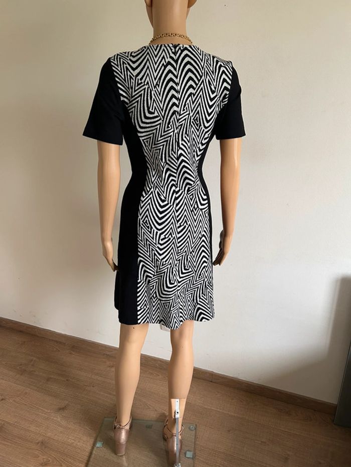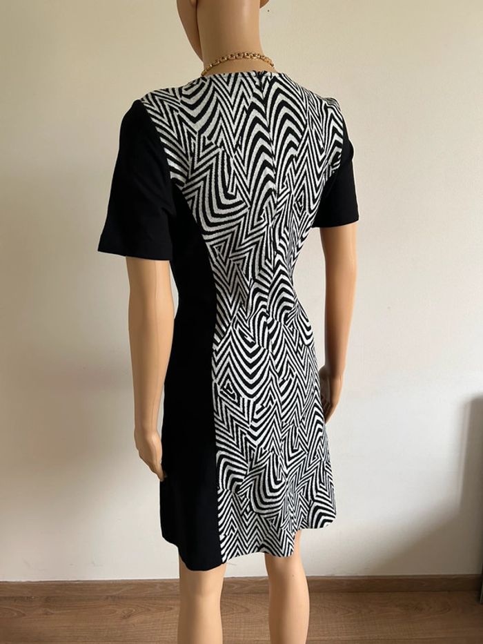 Jolie robe noire et blanche à manches courtes, de marque la Fée Maraboutée. Fermeture dans le dos. Taille 4 qui correspond à du 42, mais elle taille petit (voir mesures en dessous). Portée quelques fois, en bon état. aisselle à aisselle 45 cms à 55 cms épaule à épaule 35 cms à 42 cms taille 38 cms à 45 cms longueur depuis épaule 90 cms Le tissu est extensible 50% acrylique, 39% coton, 9% polyamide et 2% elasthanne Le prix reste négociable dans la limite du raisonnable. Un petit cadeau dans le colis 🌸