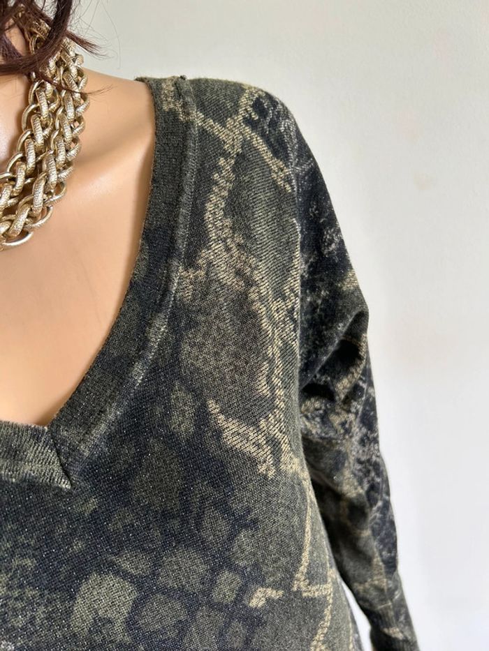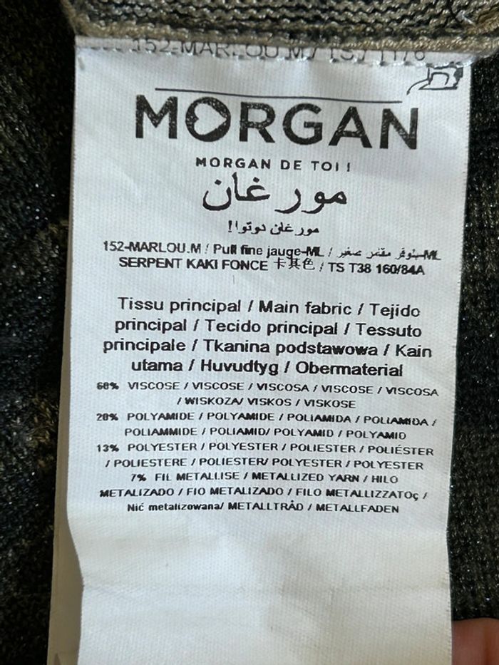 Magnifique pull long imprimé légèrement pailleté, de marque Morgan. Taille S. Jamais porté, état neuf. aisselle à aisselle 46 cms et plus taille 42 cms et plus longueur depuis épaule 75 cms Le tissu est extensible 60% viscose, 20% polyamide, 13% polyester et 7% fil métallisé Le prix reste négociable dans la limite du raisonnable. Un petit cadeau dans le colis 🌸 (Boîte 4)