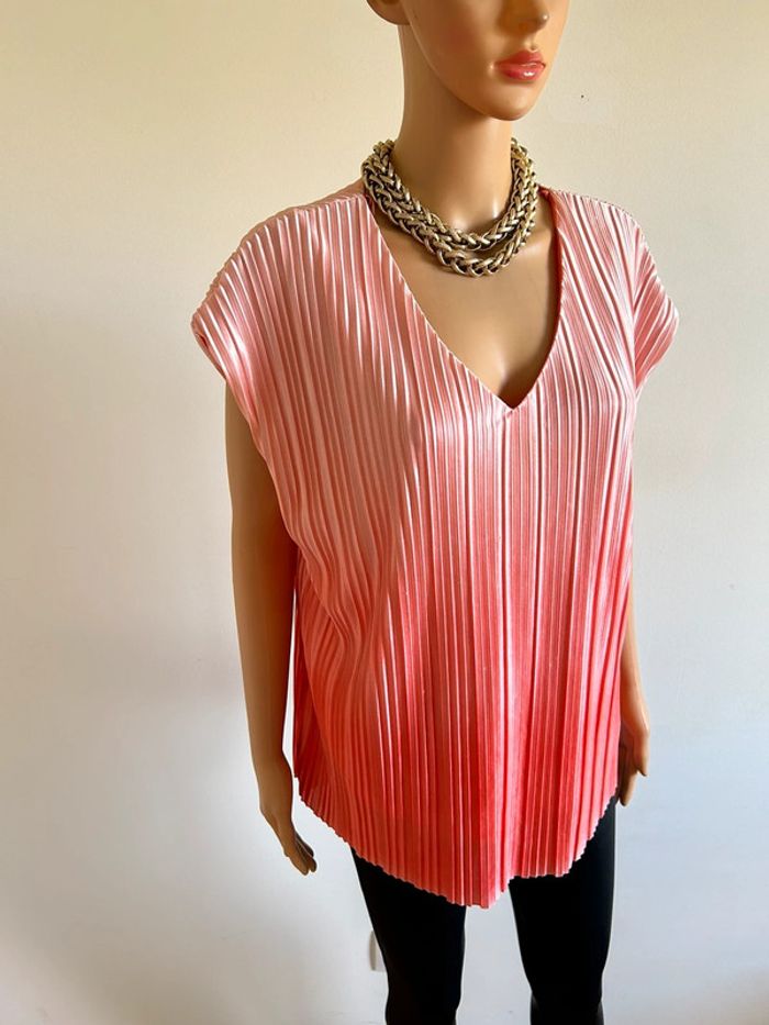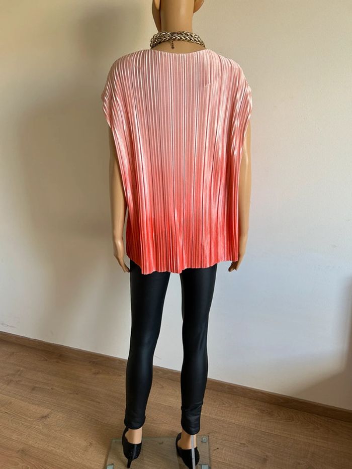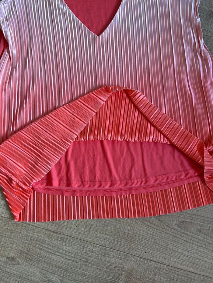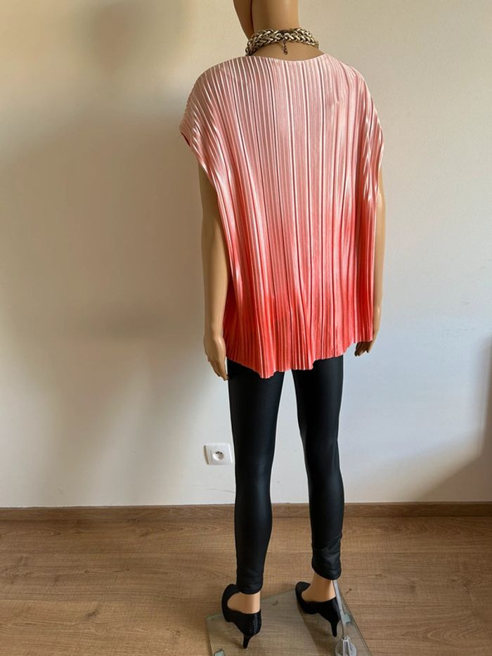 Blouse plissée rose et corail à manches courtes taille 44 jamais portée - photo numéro 1