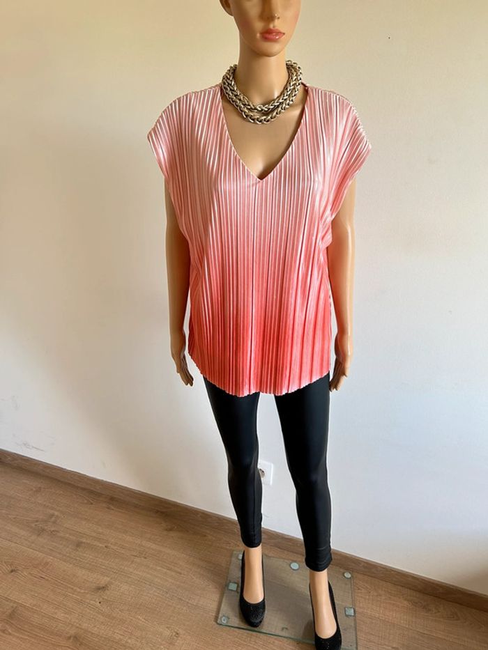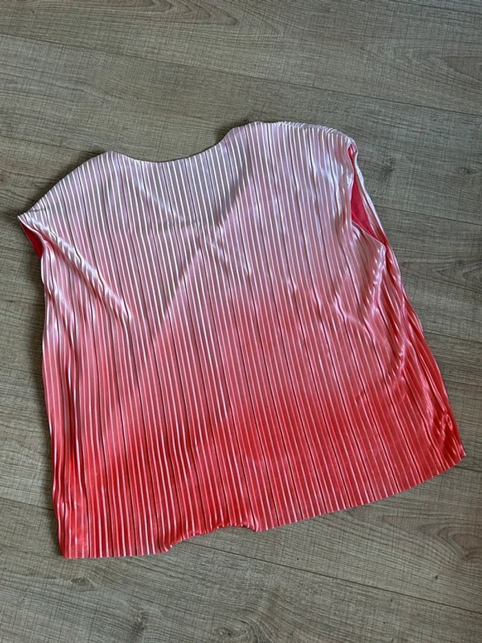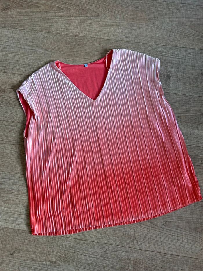 Jolie blouse plissée rose et corail à manches courtes. Taille 44. Jamais portée, état neuf. aisselle à aisselle 54 cms taille 58 cms longueur depuis épaule 63 cms 100% polyester Le prix reste négociable dans la limite du raisonnable. Un petit cadeau dans le colis 🌸 (Boîte 3)