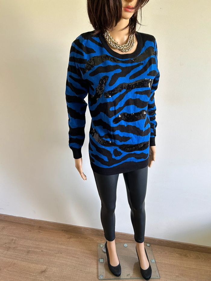 Pull bleu et noir avec sequins Morgan taille S TBE - photo numéro 11