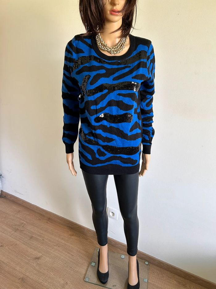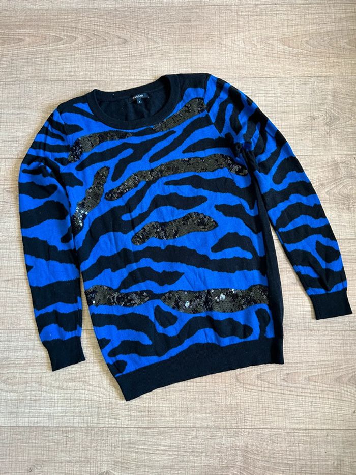 Pull bleu et noir avec sequins Morgan taille S TBE - photo numéro 1