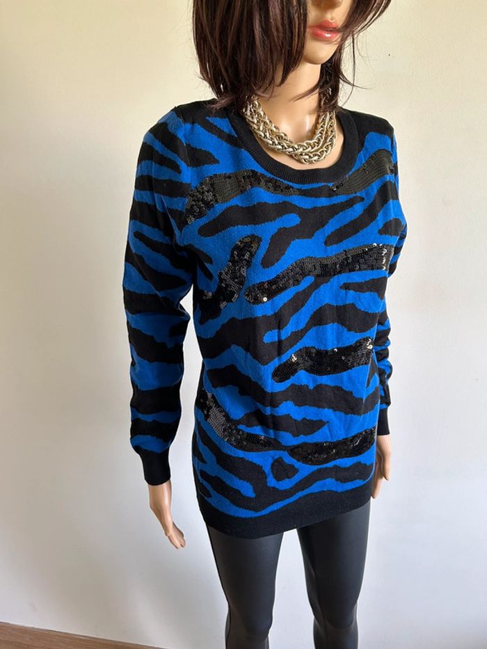 Pull bleu et noir avec sequins Morgan taille S TBE - photo numéro 9