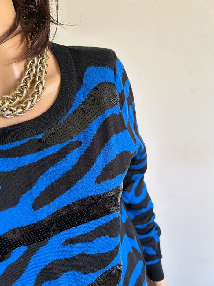 Pull bleu et noir avec sequins Morgan taille S TBE - photo numéro 7