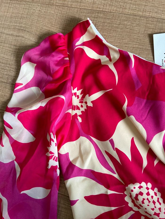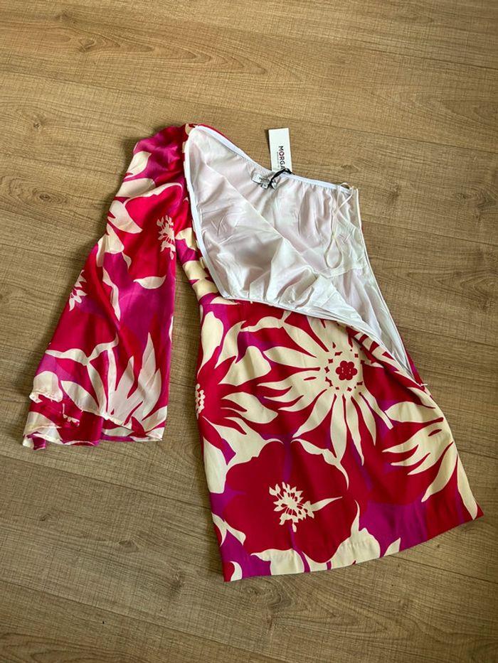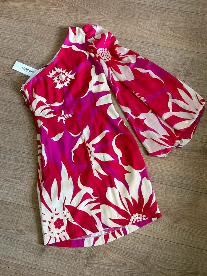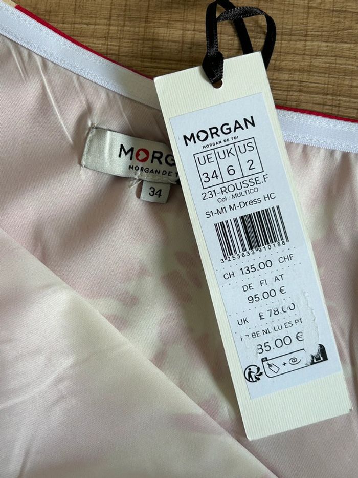 Magnifique robe imprimée rose et beige, de marque Morgan. Fermeture sur le côté. Taille 34. Elle est neuve avec étiquette (valeur 85€). aisselle à aisselle 40 cms taille 34 cms longueur depuis épaule 87 cms 100% polyester Le prix reste négociable dans la limite du raisonnable. Un petit cadeau dans le colis 🌸 (Boîte 9)