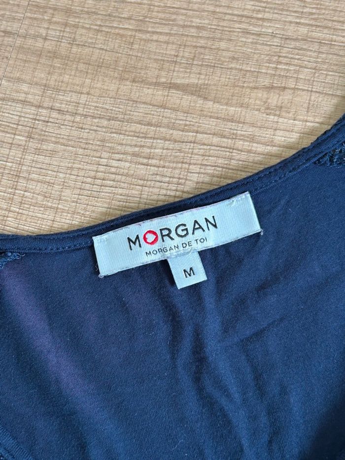 Blouse bleue marine sans manches avec dentelle Morgan taille M jamais portée - photo numéro 10