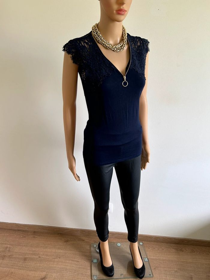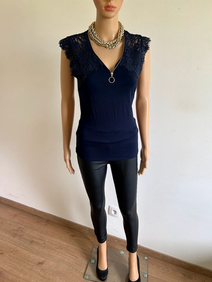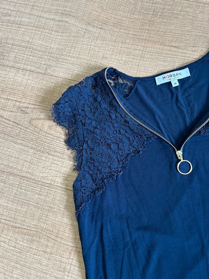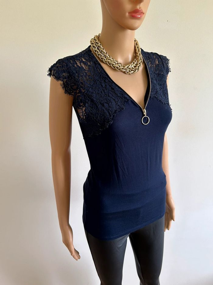 Blouse bleue marine sans manches avec dentelle Morgan taille M jamais portée - photo numéro 2