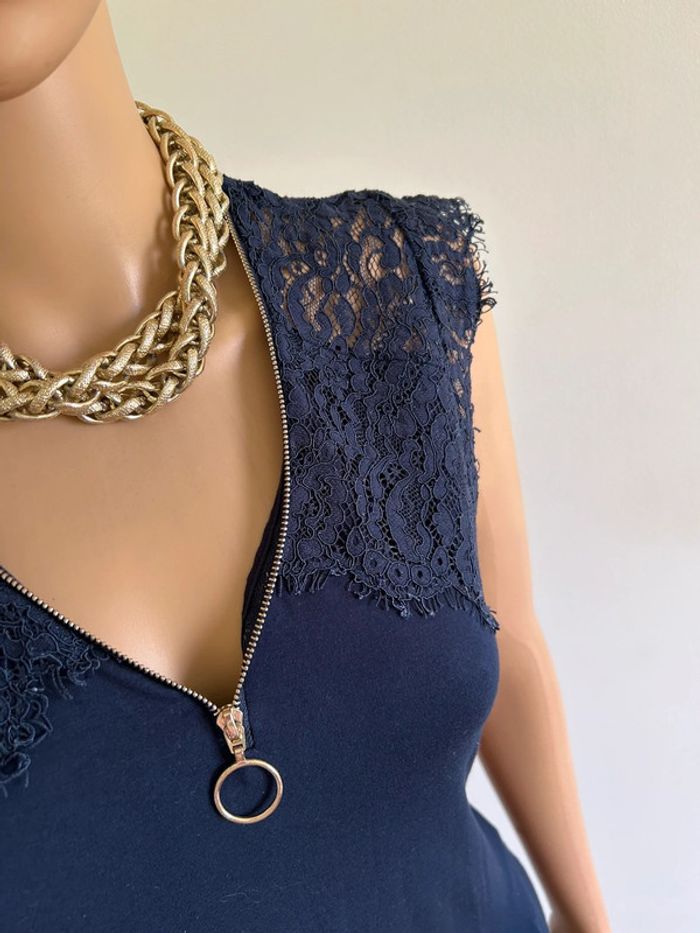 Blouse bleue marine sans manches avec dentelle Morgan taille M jamais portée - photo numéro 12