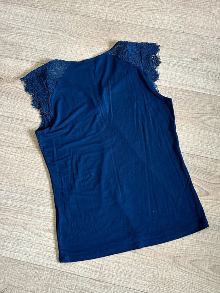 Blouse bleue marine sans manches avec dentelle Morgan taille M jamais portée - photo numéro 7
