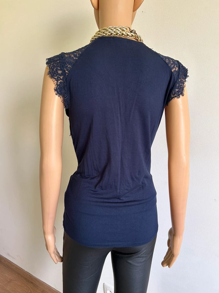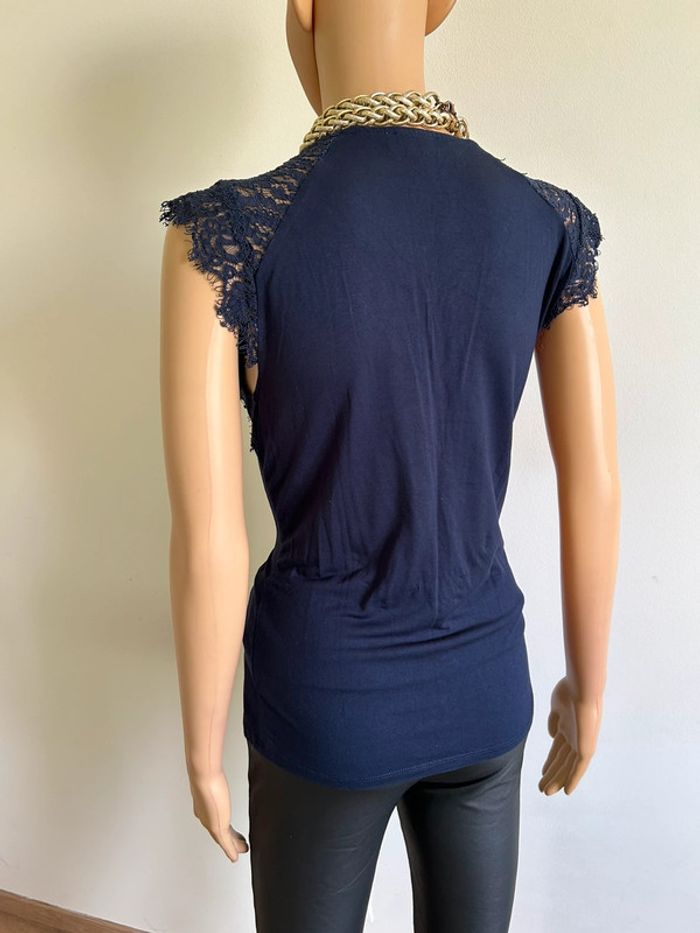 Blouse bleue marine sans manches avec dentelle Morgan taille M jamais portée - photo numéro 4