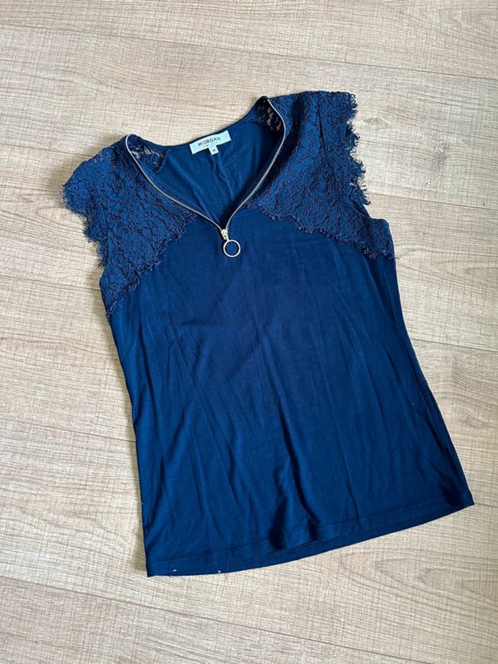 Blouse bleue marine sans manches avec dentelle Morgan taille M jamais portée - photo numéro 1