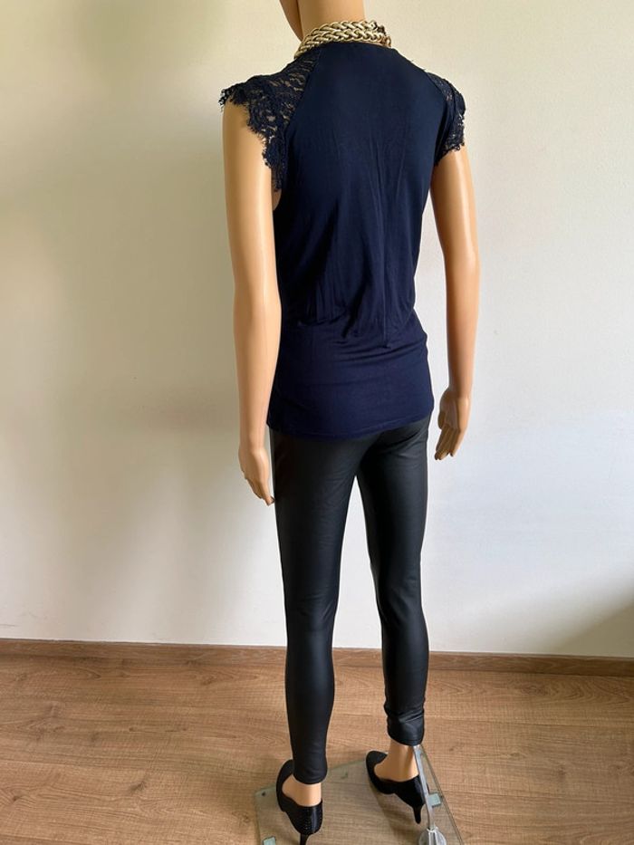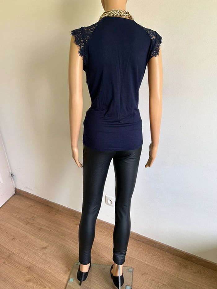 Blouse bleue marine sans manches avec dentelle Morgan taille M jamais portée - photo numéro 8