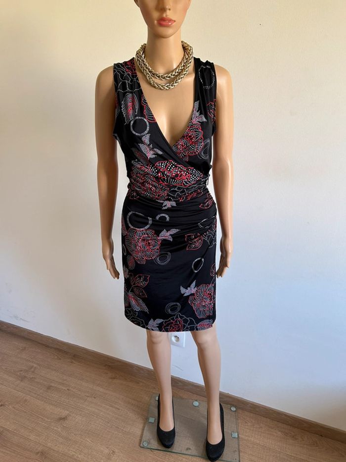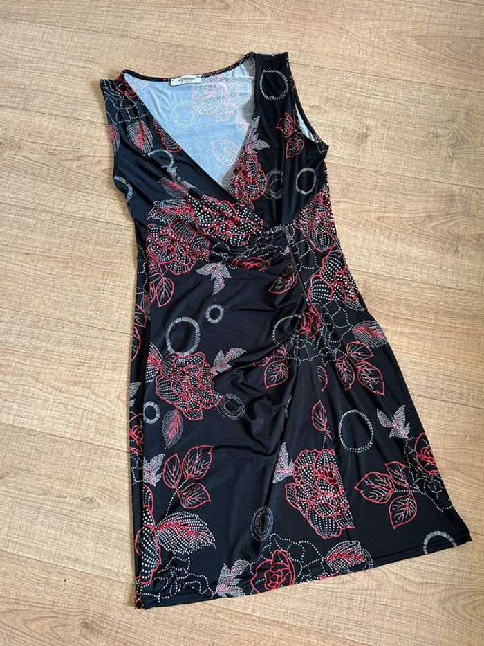 Robe noire et imprimée sans manches Morgan taille 40 TBE - photo numéro 1