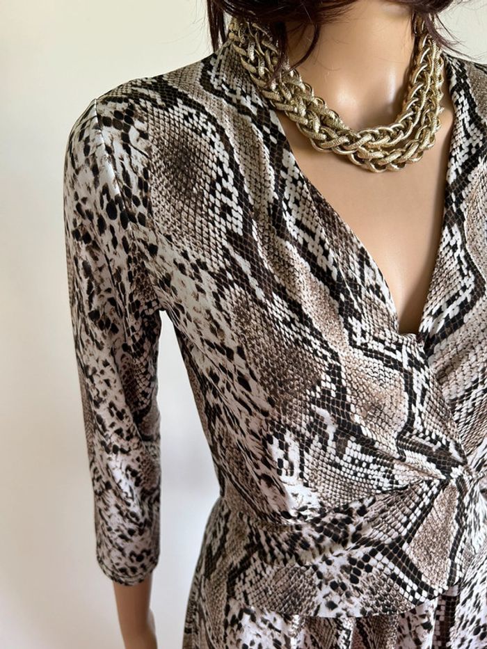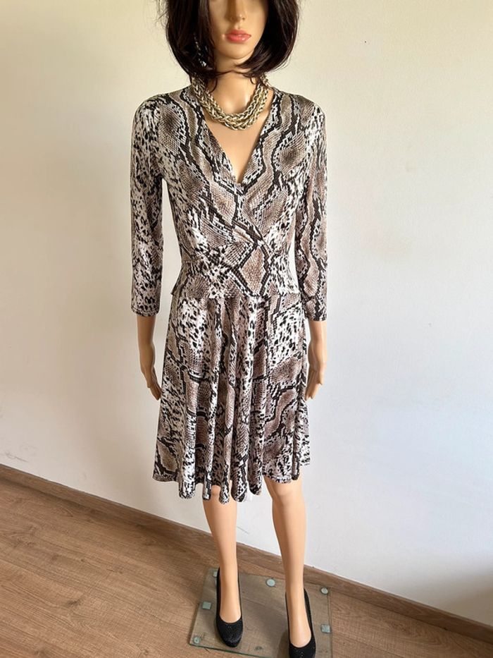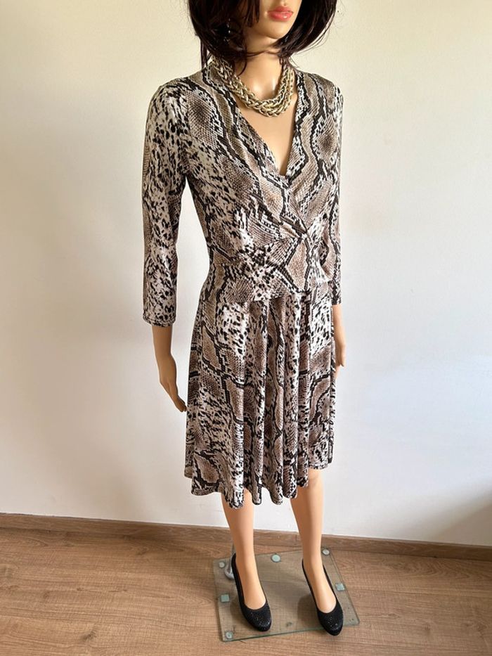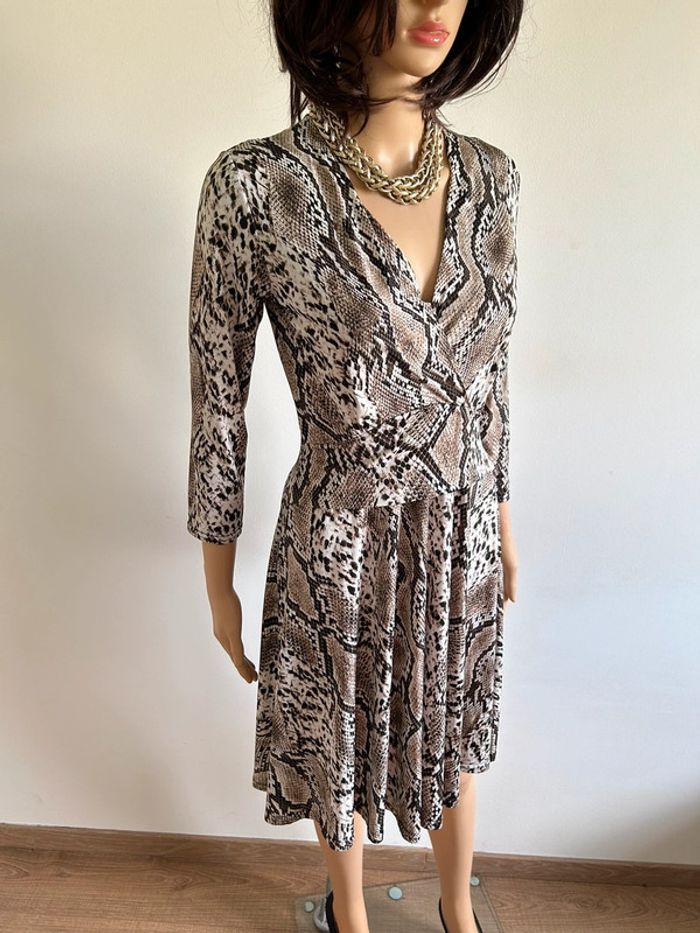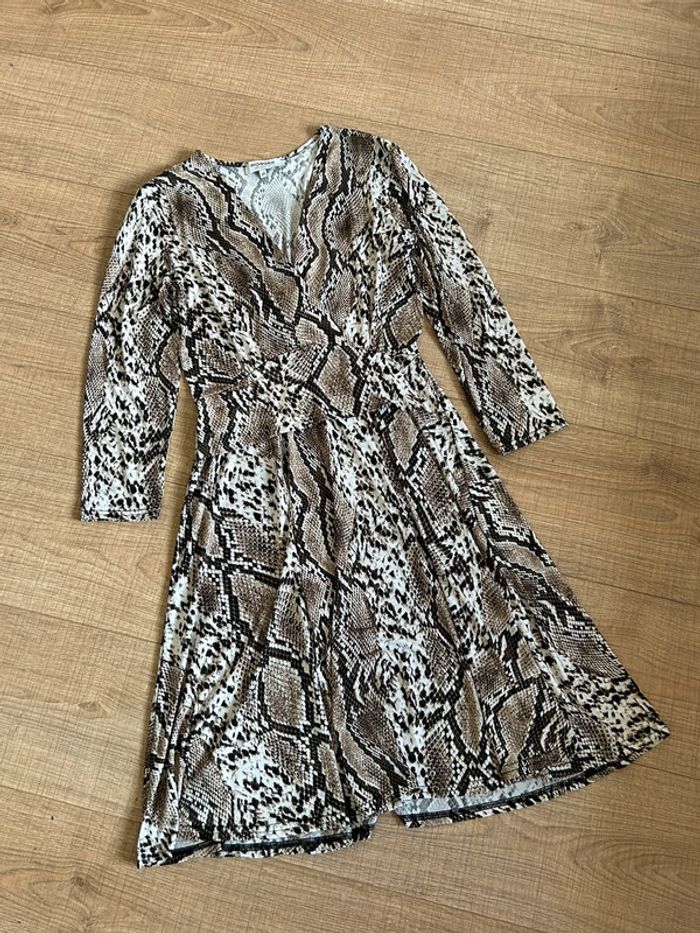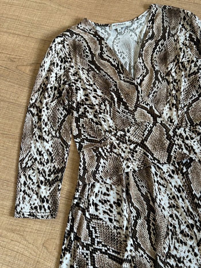 Magnifique robe imprimée beige et marron, avec manches 3/4, de marque Morgan. Taille 34. Jamais portée, état neuf. aisselle à aisselle 41 cms et plus épaule à épaule 37 cms et plus taille 32 cms à 38 cms longueur depuis épaule 92 cms Le tissu est extensible Étiquette intérieure de composition coupée Le prix reste négociable dans la limite du raisonnable. Un petit cadeau dans le colis 🌸 (Boîte 14)