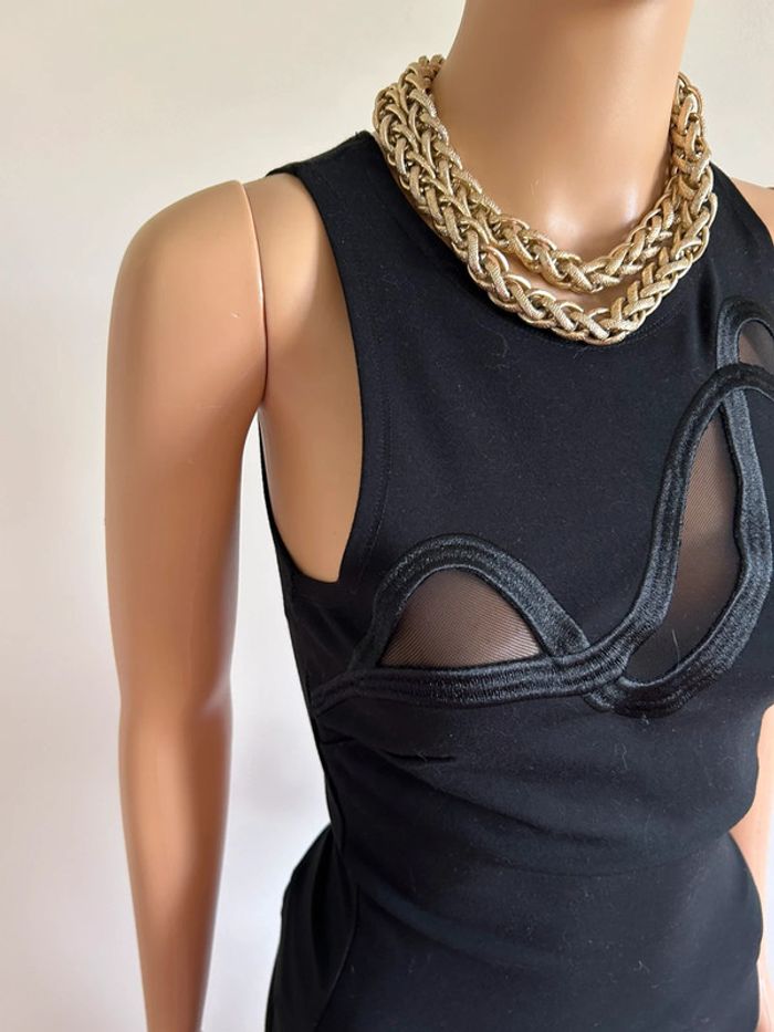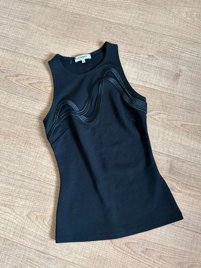 Magnifique haut noir sans manches, de marque Morgan. Taille XS. Jamais porté, état neuf. aisselle à aisselle 36 cms à 41 cms taille 31 cms à 36 cms longueur depuis épaule 60 cms Le tissu est extensible Étiquette intérieure de composition coupée Le prix reste négociable dans la limite du raisonnable. Un petit cadeau dans le colis 🌸 (Boîte 1)