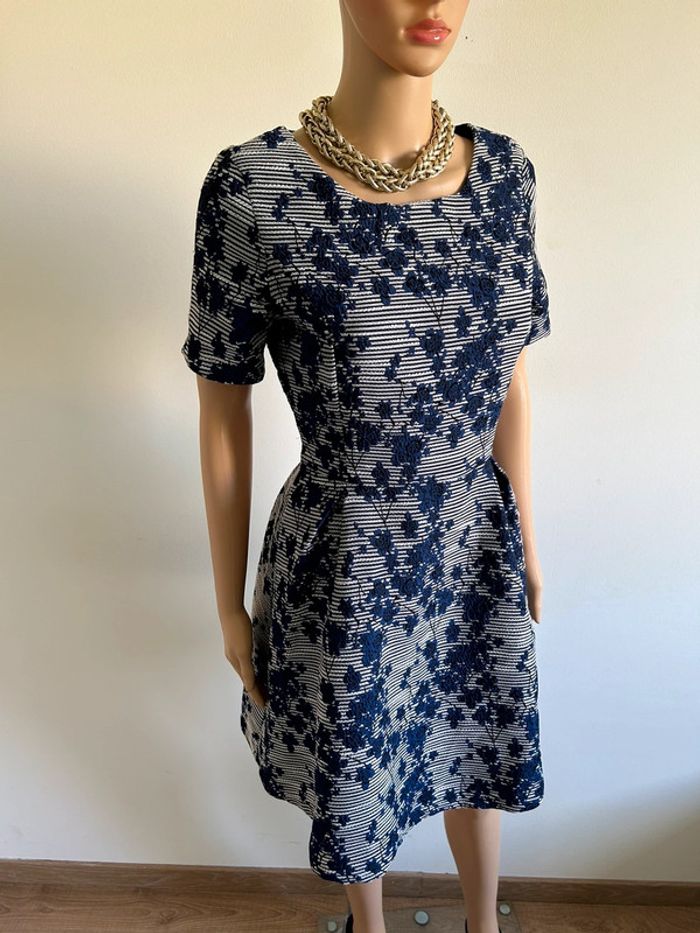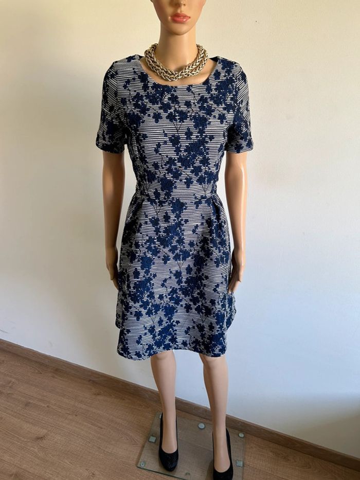 Robe bleue et blanche à manches courtes Naf Naf taille 36 TBE - photo numéro 1