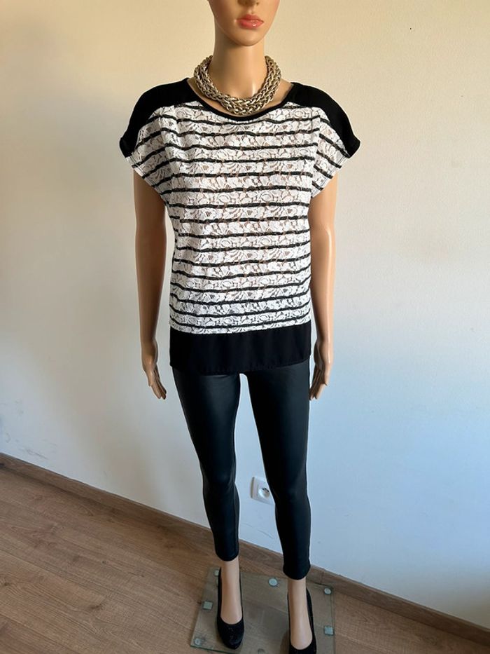 Blouse noire et blanche avec dentelle Morgan taille 40 jamais portée