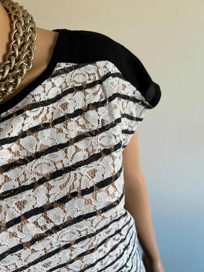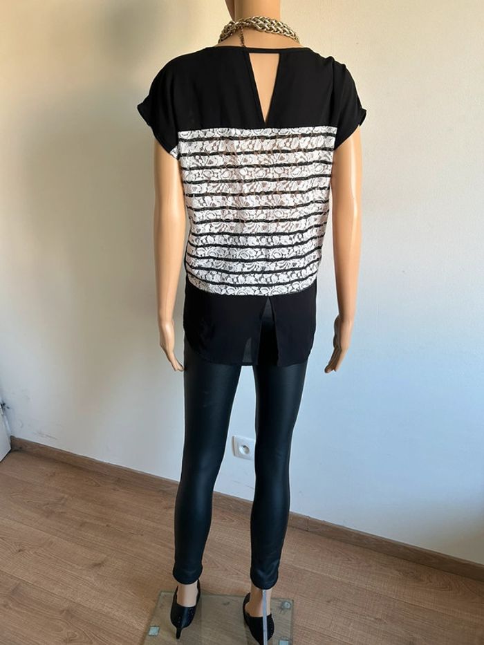 Blouse noire et blanche avec dentelle Morgan taille 40 jamais portée - photo numéro 14