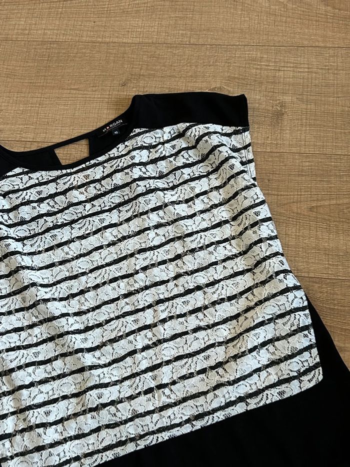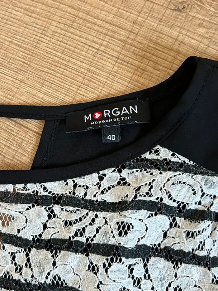 Blouse noire et blanche avec dentelle Morgan taille 40 jamais portée - photo numéro 1