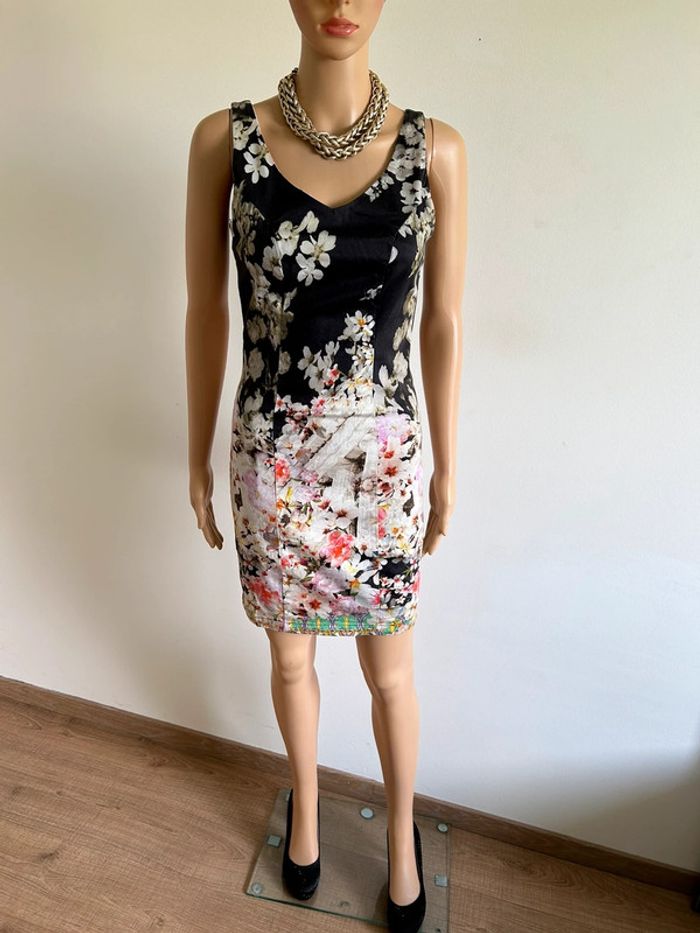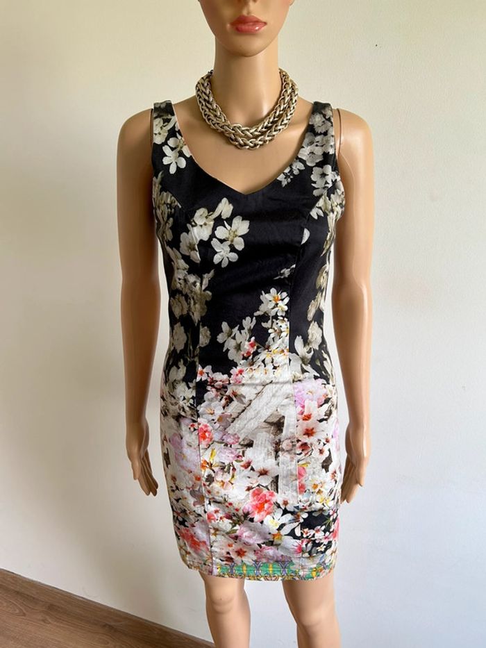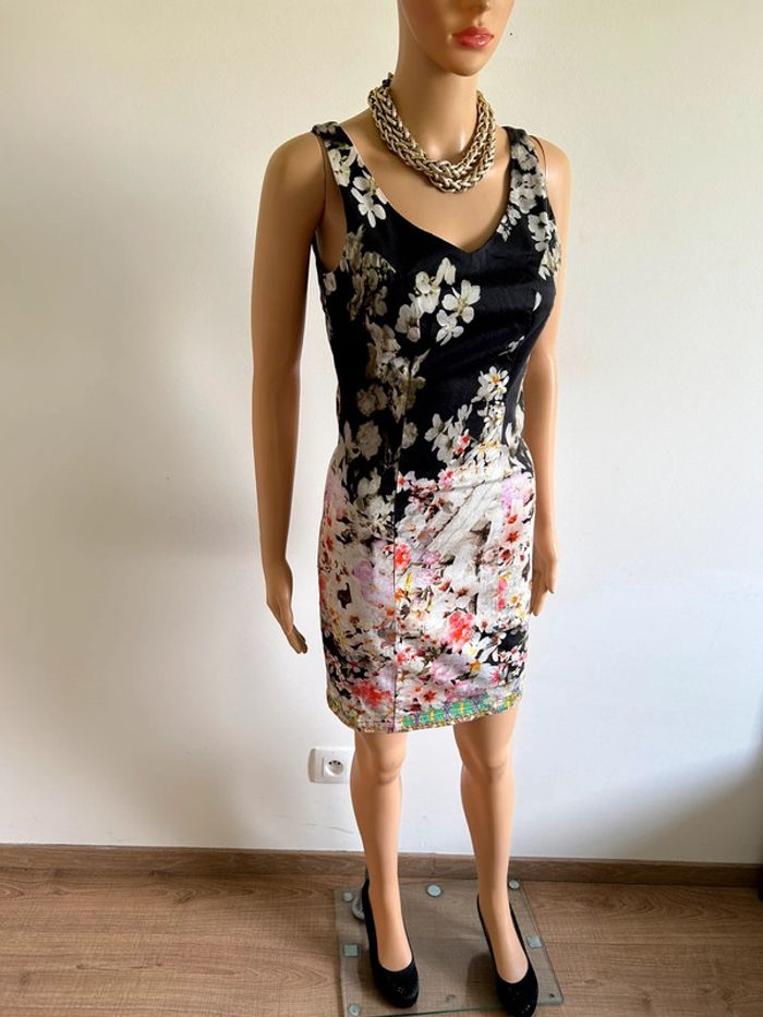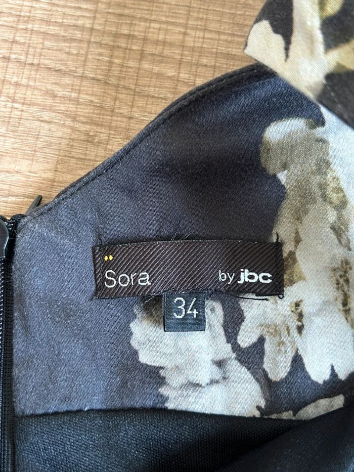 Jolie robe noire et beige fleurie, sans manches, de marque Sora by JBC. Fermeture dans le dos. Taille 34. Portée plusieurs fois, en bon état. aisselle à aisselle 41 cms taille 34 cms longueur depuis épaule 87 cms Le tissu est légèrement extensible 95% polyester et 5% elasthanne Le prix reste négociable dans la limite du raisonnable. Un petit cadeau dans le colis 🌸 (Boîte 49)