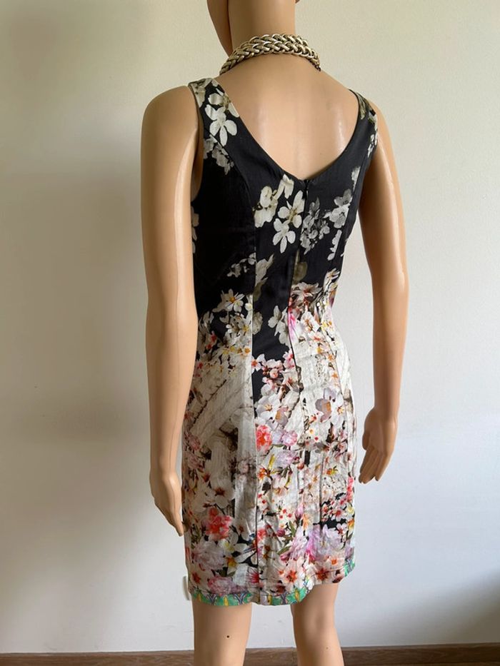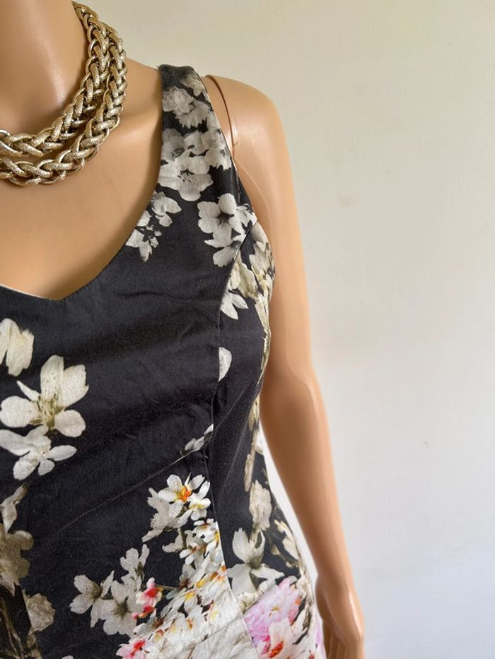 Robe noire et beige fleurie sans manches Sora by JBC taille 34 bon état - photo numéro 13