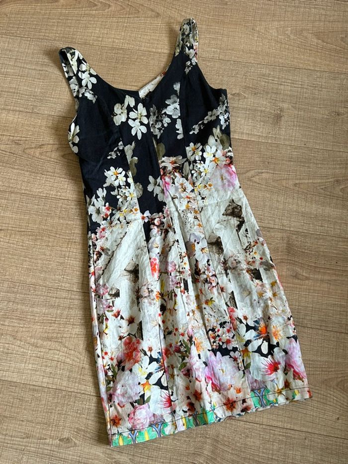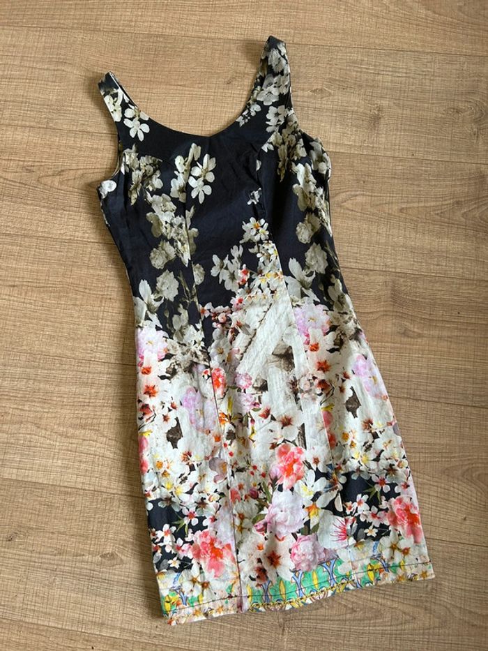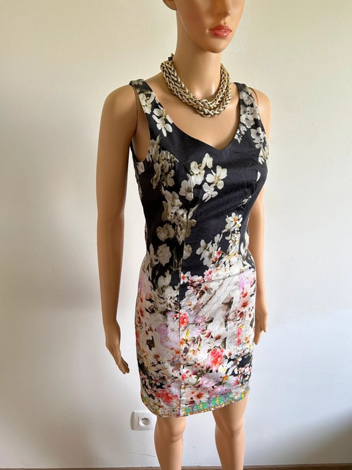 Robe noire et beige fleurie sans manches Sora by JBC taille 34 bon état - photo numéro 1