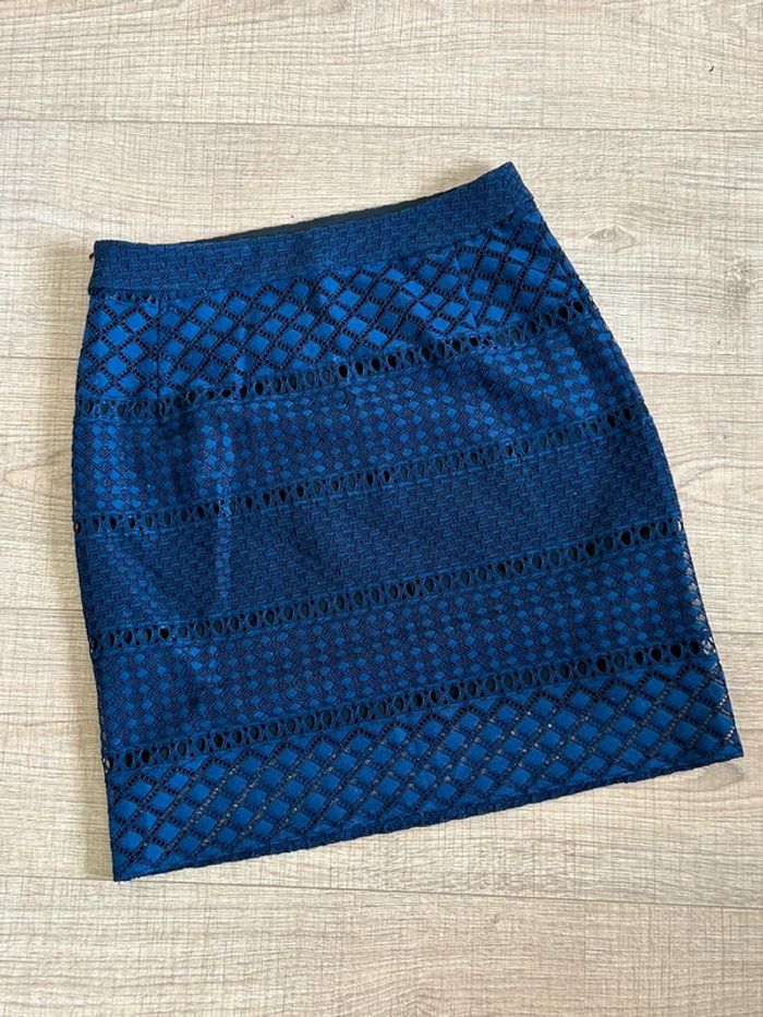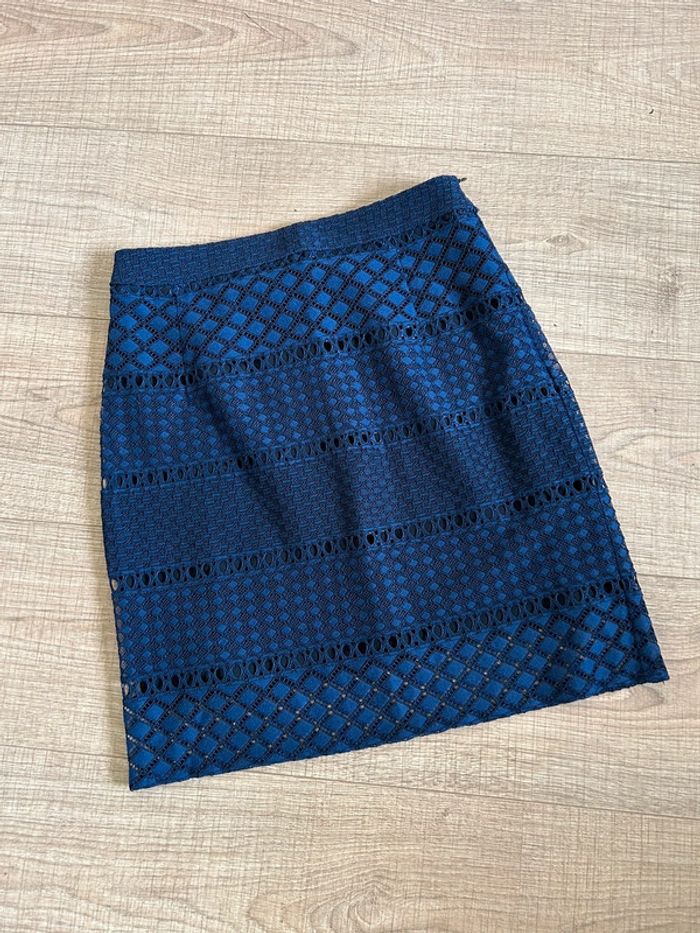 Magnifique jupe bleue marine en dentelle, de marque Comptoir des Cotonniers. Fermeture sur le côté. Taille 34. Jamais portée, état neuf. taille 33 cms longueur 48 cms 47% coton, 39% polyamide et 14% viscose Le prix reste négociable dans la limite du raisonnable. Un petit cadeau dans le colis 🌸