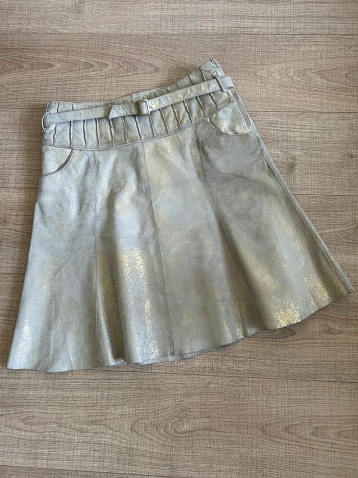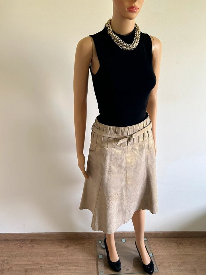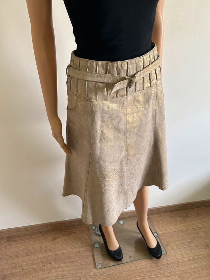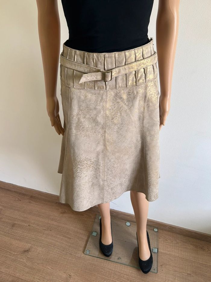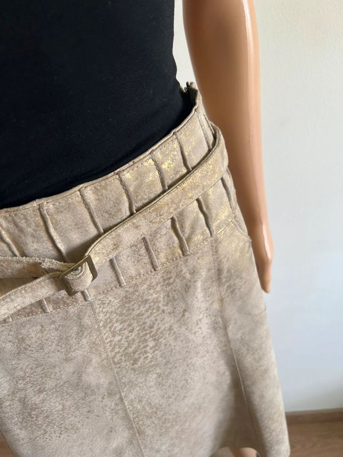 Jupe beige et dorée en cuir mi longue Vero Moda taille M bon état - photo numéro 2
