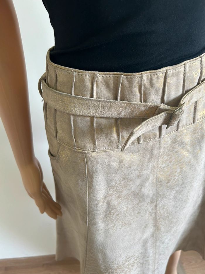 Jupe beige et dorée en cuir mi longue Vero Moda taille M bon état - photo numéro 3