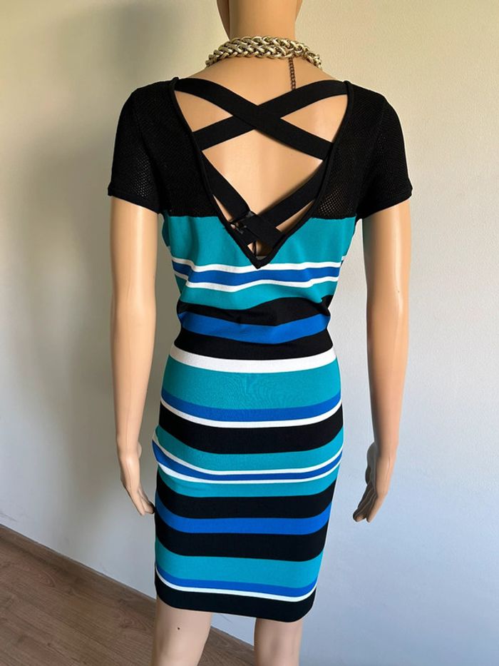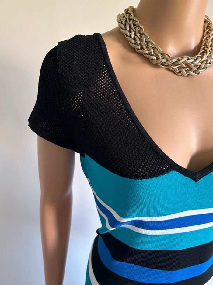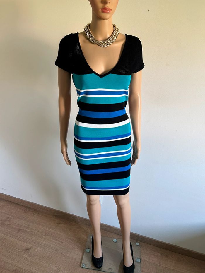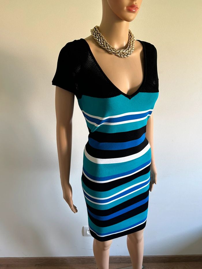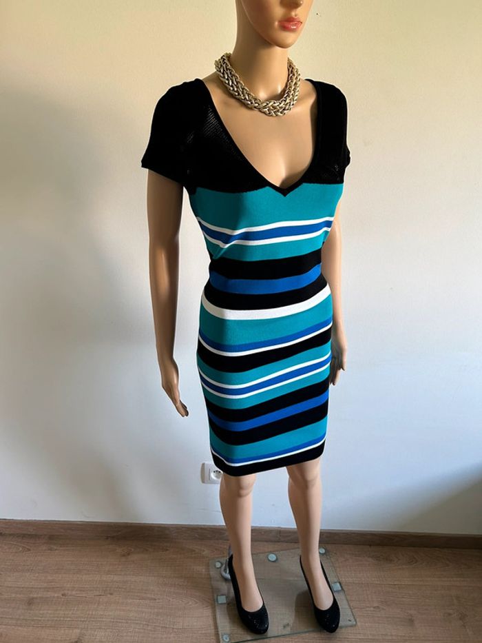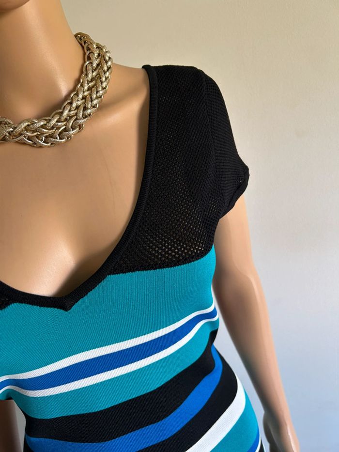 Magnifique robe rayée bleue turquoise, noire et blanche, à manches courtes, de marque Morgan. Taille L. Elle est neuve avec étiquette (valeur 55€). aisselle à aisselle 45 cms et plus épaule à épaule 37 cms et plus taille 39 cms et plus longueur depuis épaule 91 cms Le tissu est extensible 51% viscose et 49% polyamide Le prix reste négociable dans la limite du raisonnable. Un petit cadeau dans le colis 🌸 (Boîte 17)