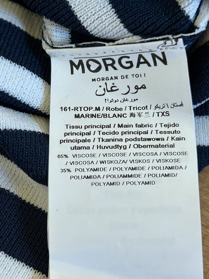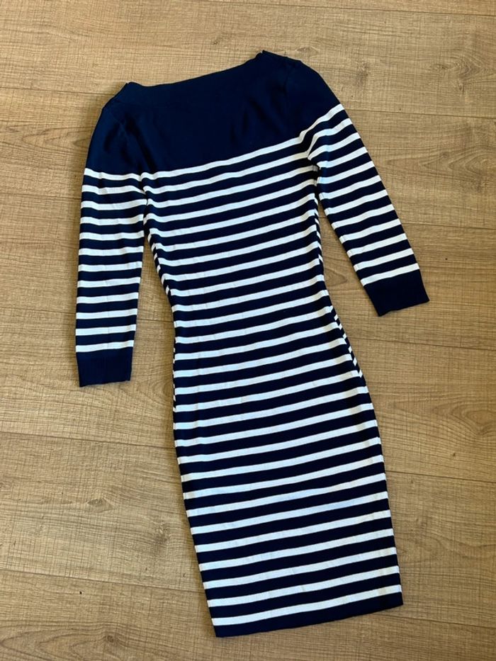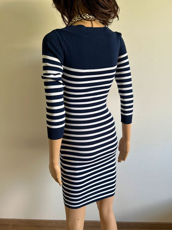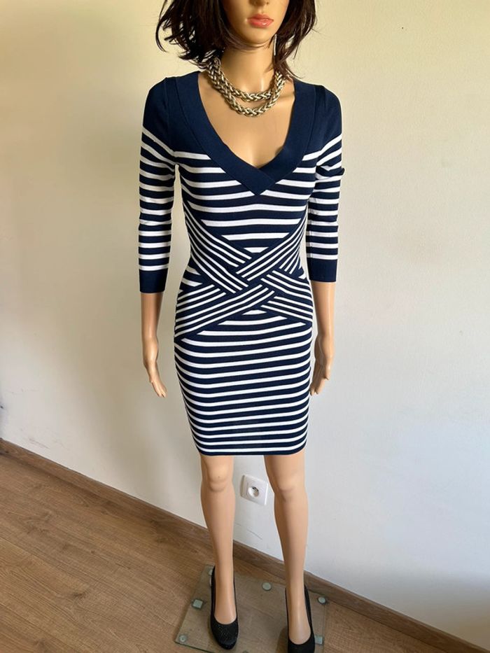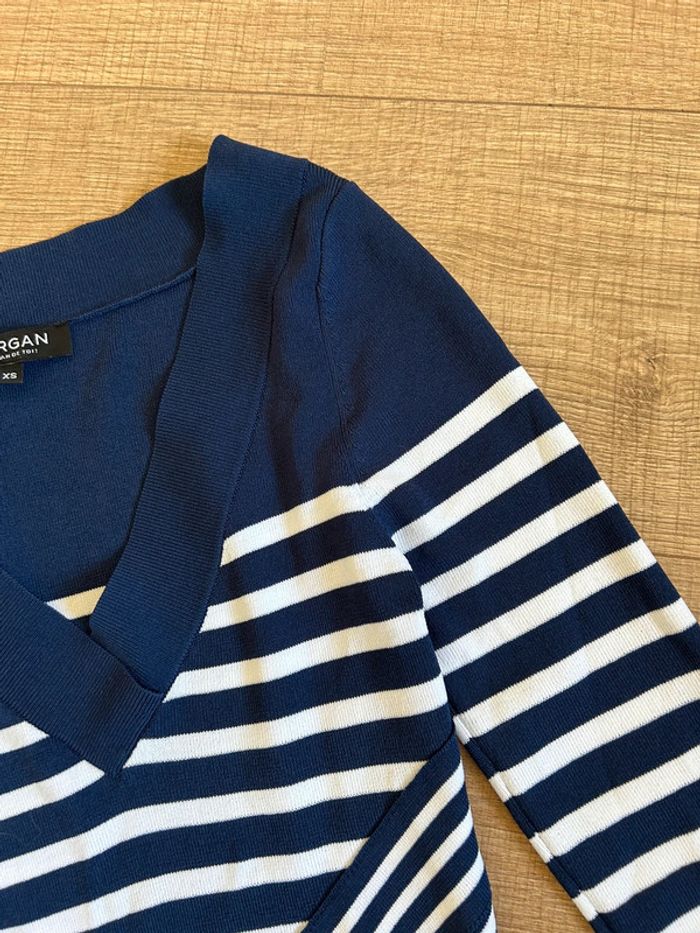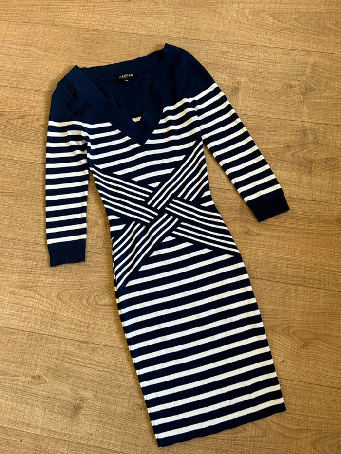 Magnifique robe bleue marine et blanche à rayures, de marque Morgan.