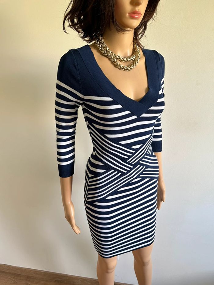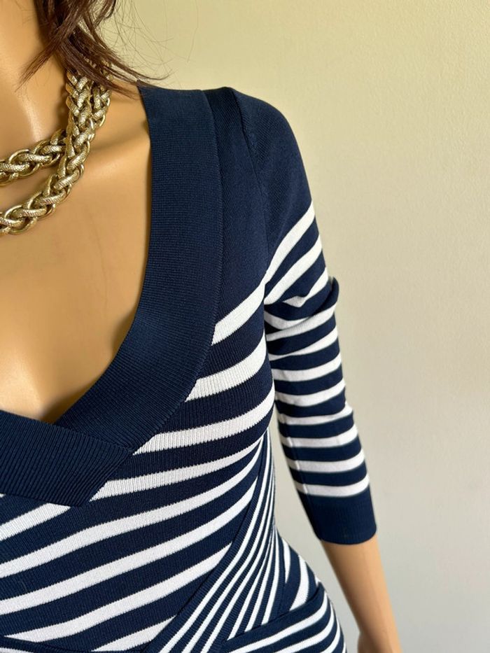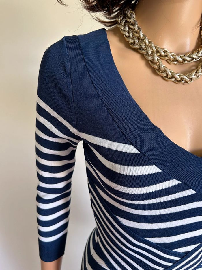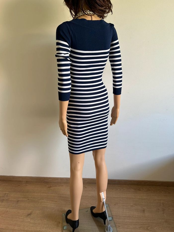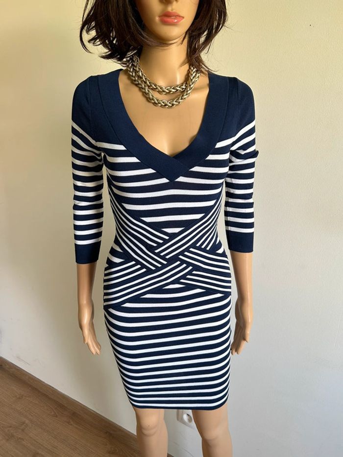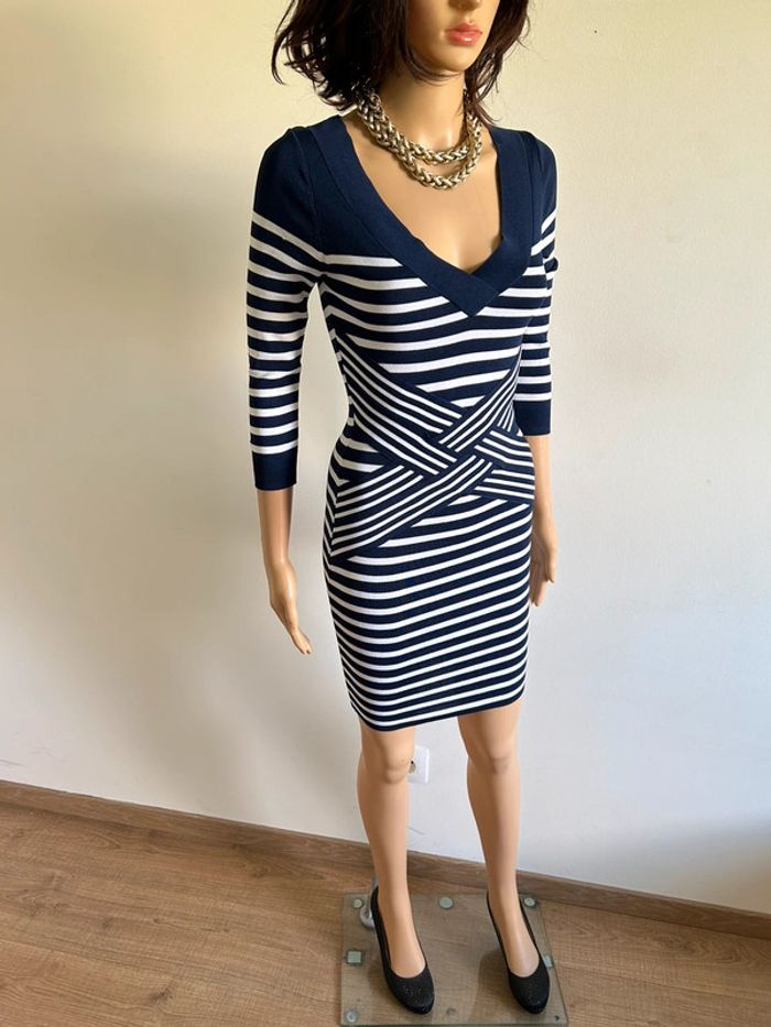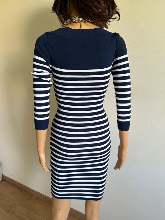 Magnifique robe bleue marine et blanche à rayures, de marque Morgan.