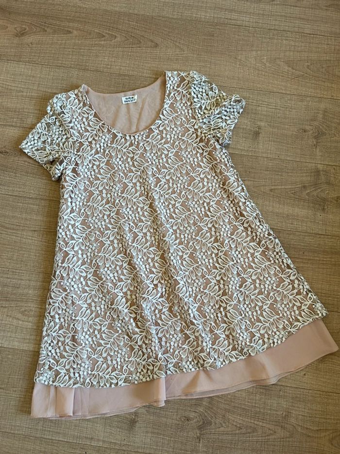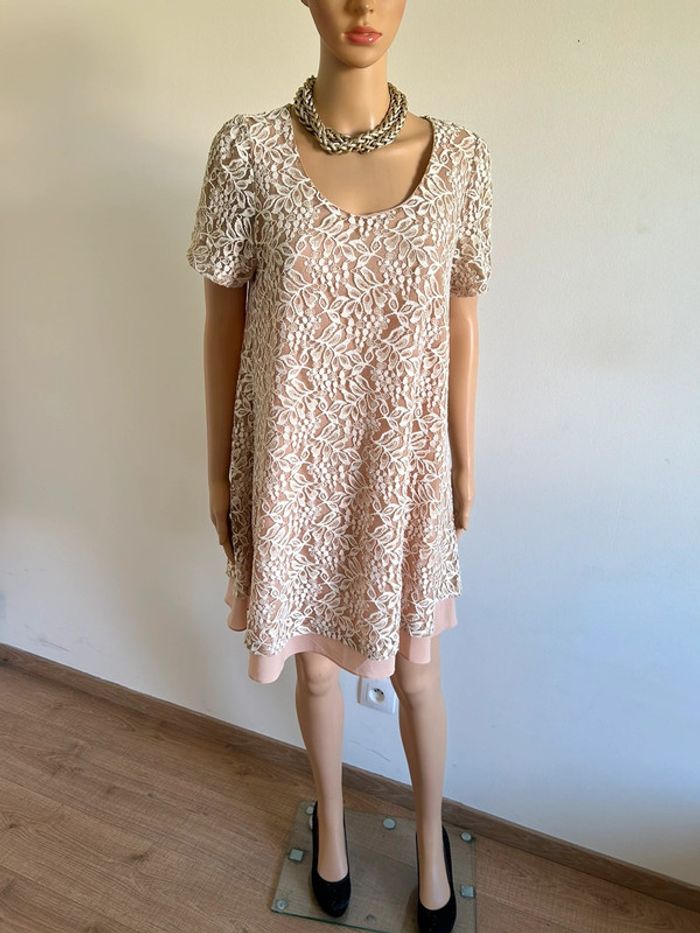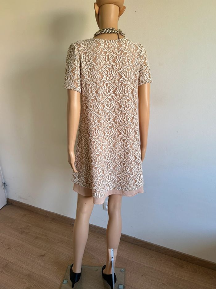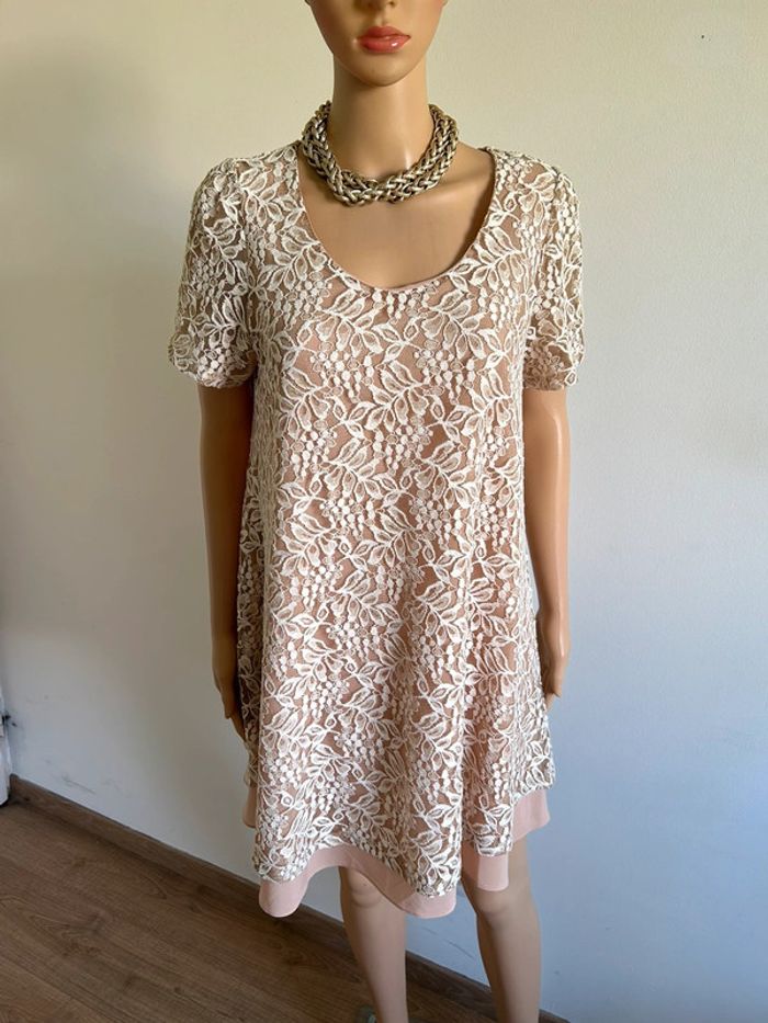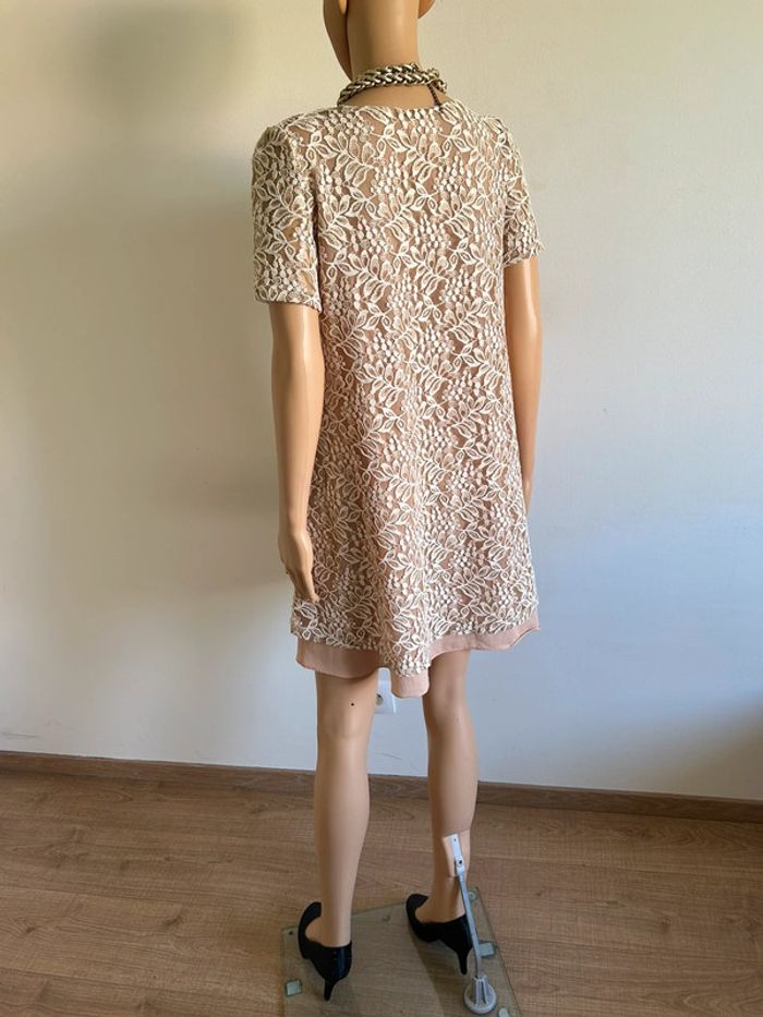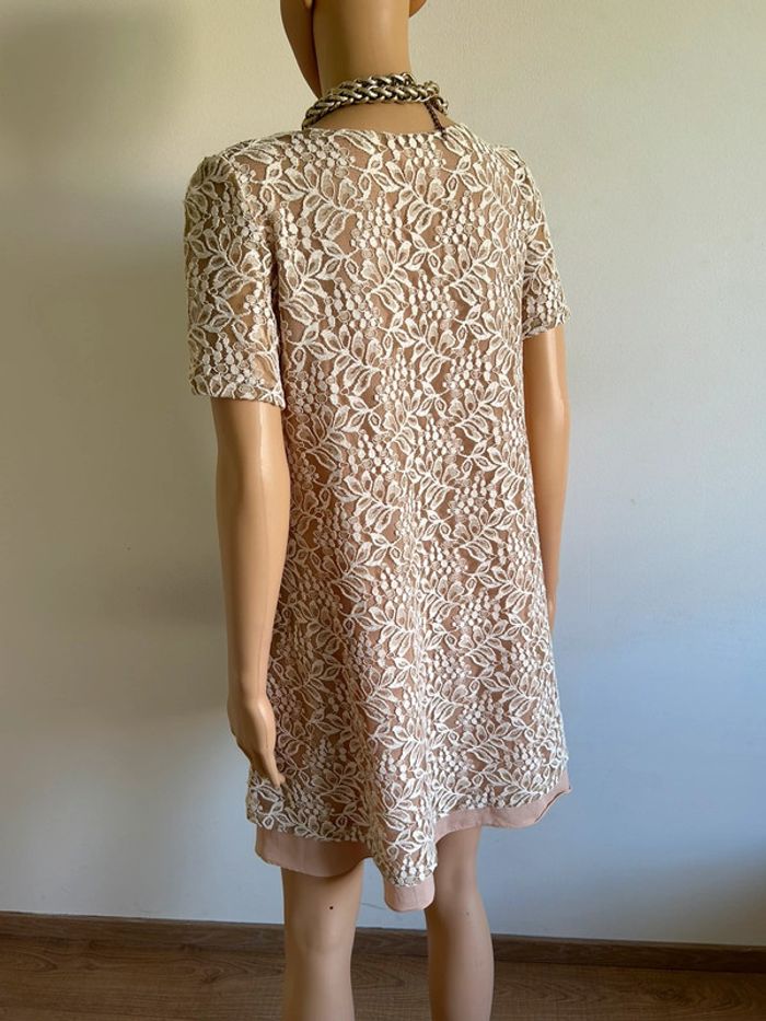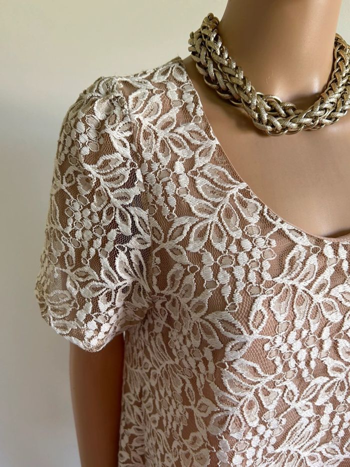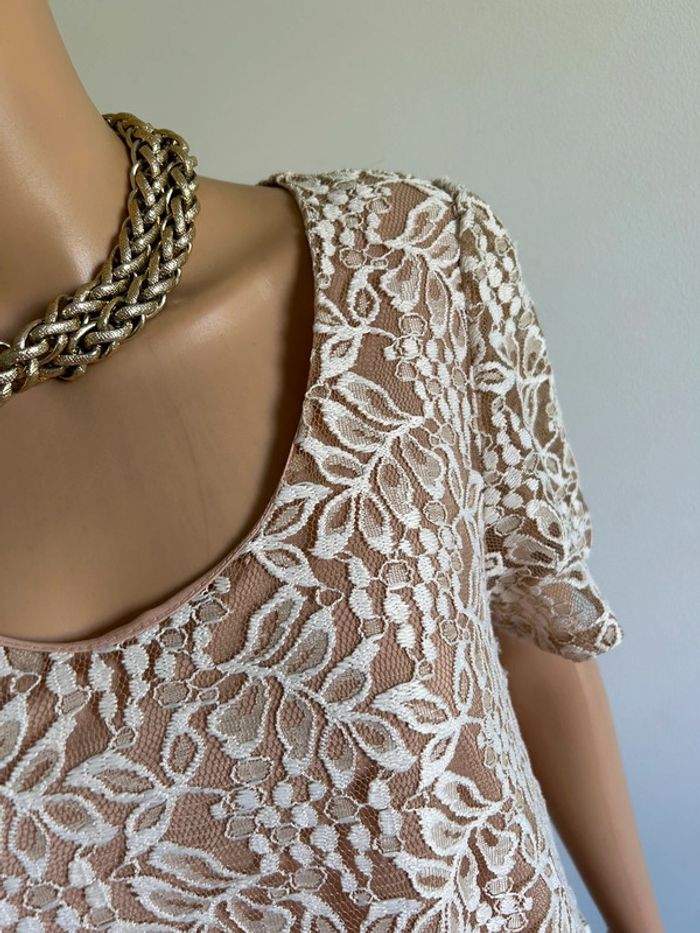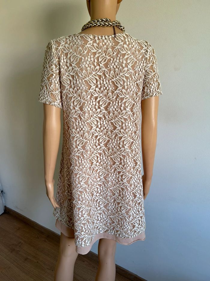 Jolie robe beige en dentelle, à manches courtes, de marque Molly Bracken. Taille 2 qui correspond à du 38. Jamais portée, état neuf. aisselle à aisselle 46 cms épaule à épaule 38 cms taille 48 cms longueur depuis épaule 84 cms 92% polyamide et 8% polyuréthane Le prix reste négociable dans la limite du raisonnable. Un petit cadeau dans le colis 🌸 (Boîte 27)