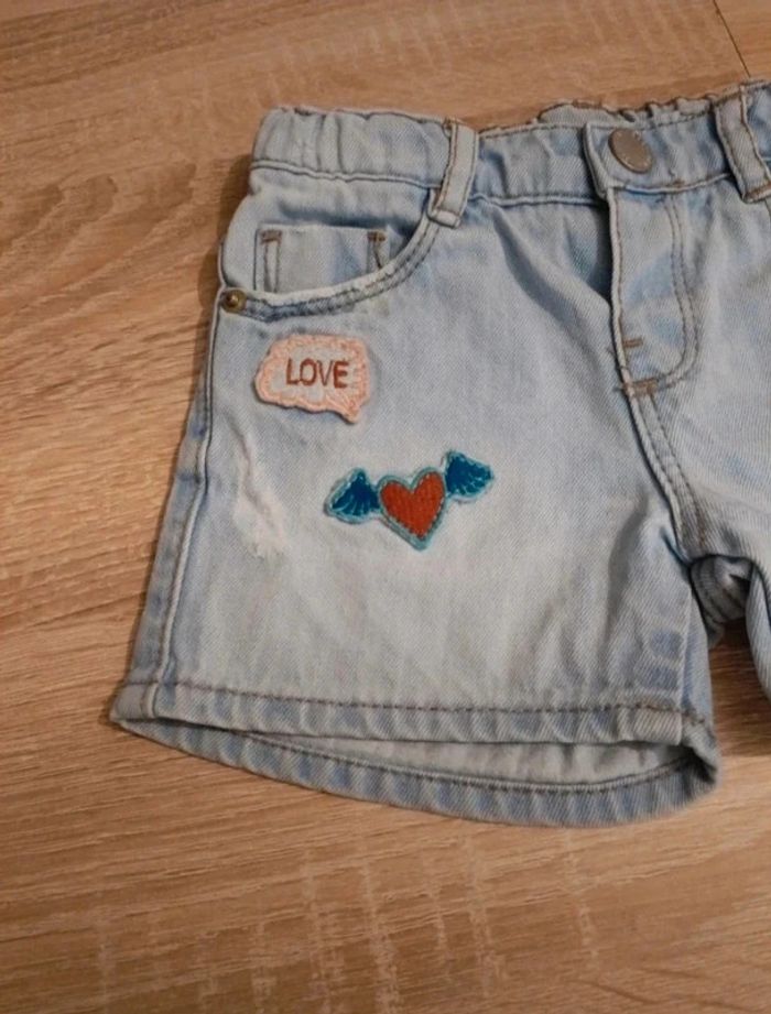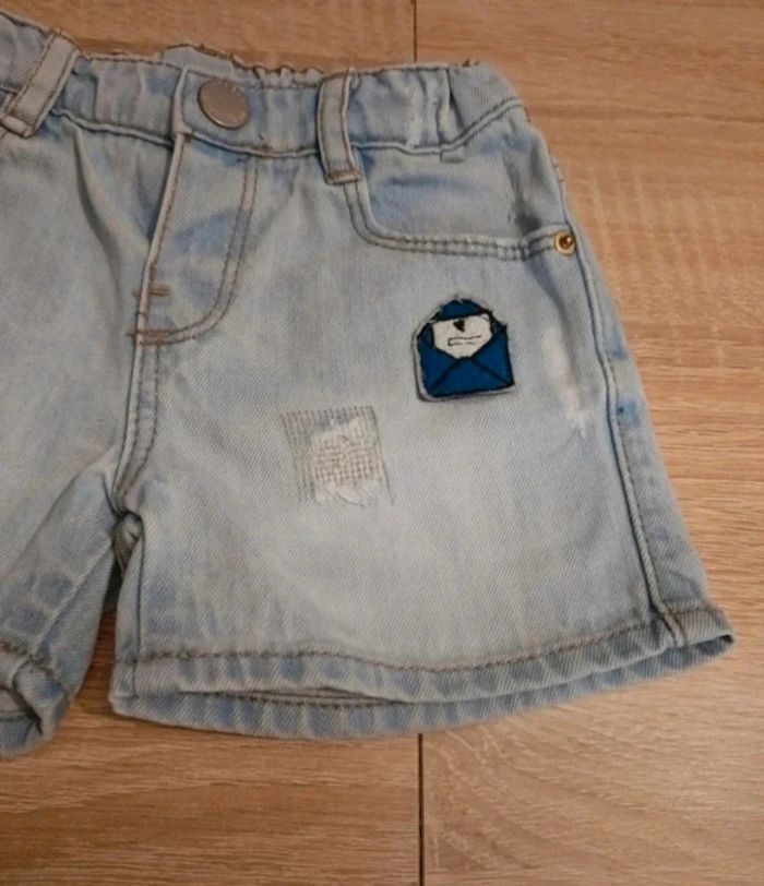 Short jean Avec petit image Short effet délavé Taille réglable Taille 12-18mois Marque Zara #adou49taille1ans #adou49taille18mois
