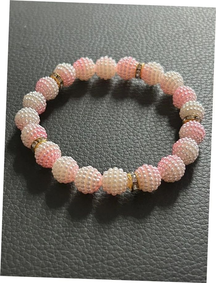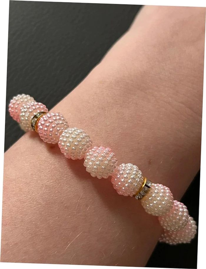 Bracelet rose clair blanc et doré en perles taille unique jamais porté - photo numéro 5