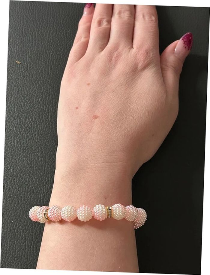 Bracelet rose clair blanc et doré en perles taille unique jamais porté - photo numéro 7