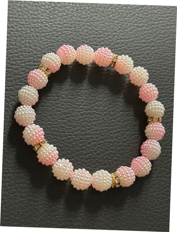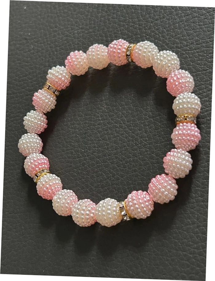 Bracelet rose clair blanc et doré en perles taille unique jamais porté - photo numéro 1